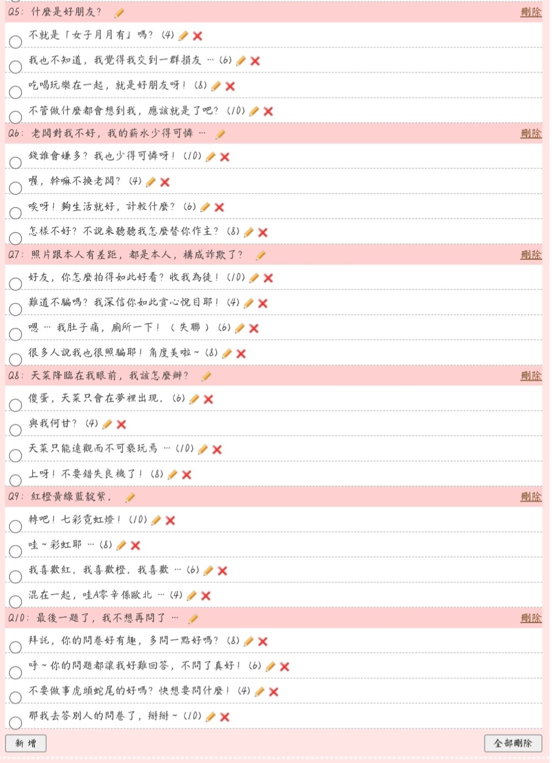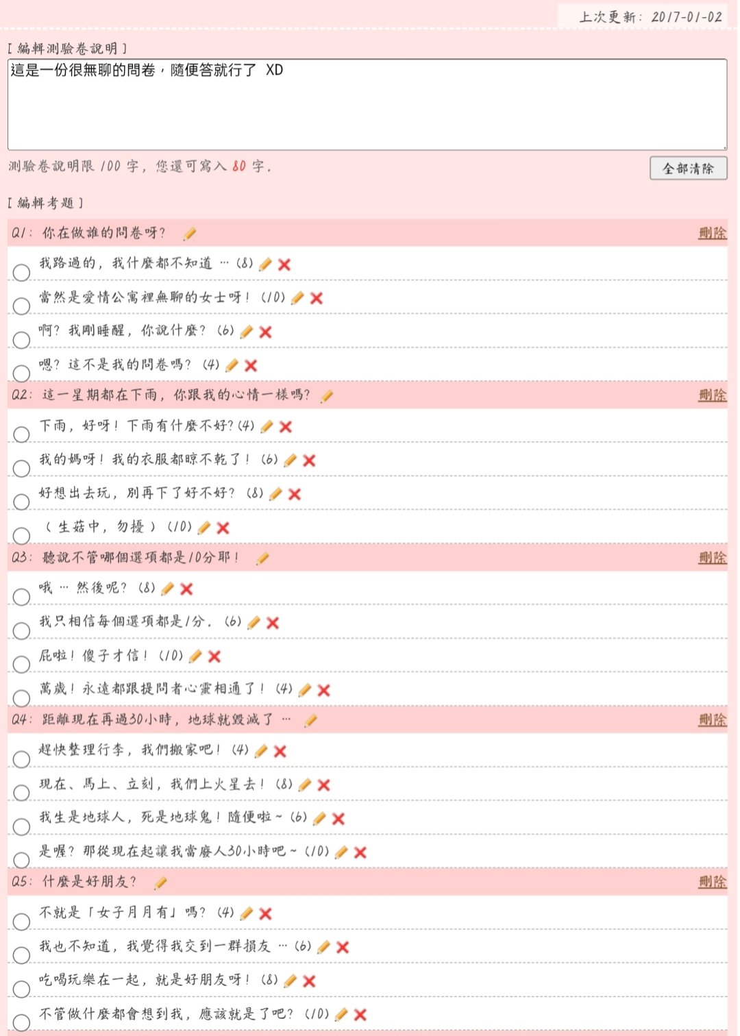 這是一份很無聊的問卷,隨便答就行了。