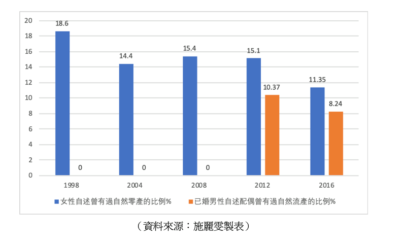 如果生產一直被當作「女人的事」,那麼流產應該更難逃離這種刻板觀念。來看看衛生福利部國民健康署「家庭與生育調查」的歷年報告中,竟然一直到2012年辦理第十一次調查時,男性才被納入統計,而且「女性自述的自然流產」高於「已婚男性自述配偶曾經自然流產」的比例,這是怎麼回事?
