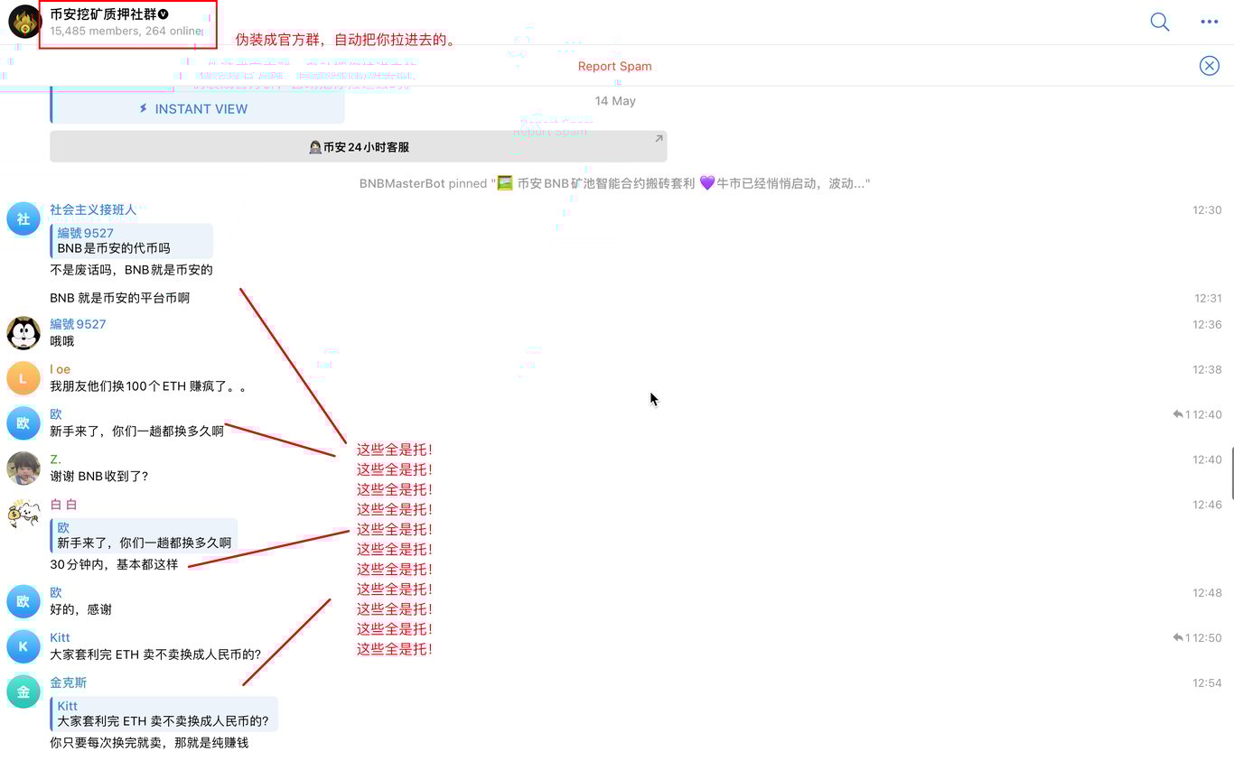 不法分子潜伏在官方社群,使用类似官方人员的头像和名称。