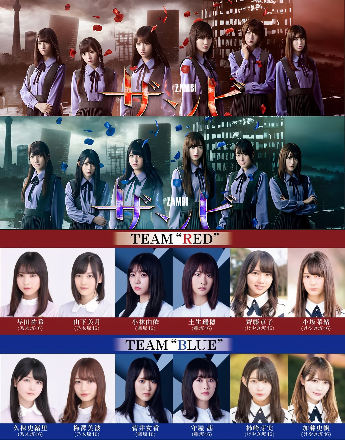 作為「殘美計劃」的一環,由乃木坂46、櫸坂46、平假名櫸坂46共同演出的舞台劇「殘美」(ザンビ)於東京巨蛋城表演廳首演。此為坂道系列姐妹團首度共同參與演出的舞台劇,每組合各派出四人,分為TEAM RED(与田佑希、山下美月、小林由依、土生瑞穗、齊藤京子、小坂菜緒)和TEAM BLUE(久保史緒里、梅澤美波、守屋茜、菅井友香、柿崎芽実、加藤史帆)兩組各六人演出。以「體感型舞台」作為概念,在普通坐席之外還安排了在舞台中央前方長方形花道內側的「殘美特殊席位」(ザンビスペシャルシート),由於非常接近舞台,可以提供給觀眾更強的代入感。該座位在之後的表演中亦有被舞台上表演者使用的道具淋濕或弄髒的可能,在購票之前會得到相關提示。