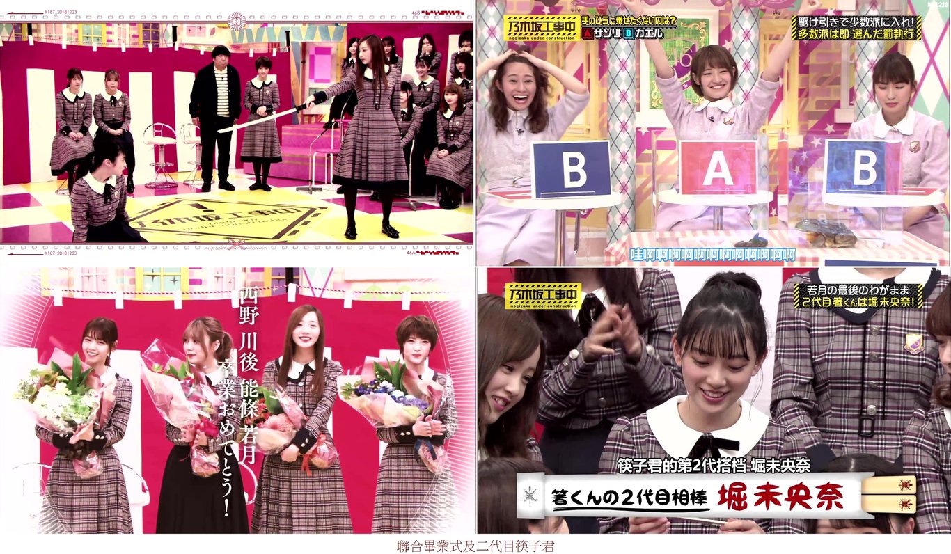「工事中」播出早前錄影的「一期生四人聯合畢業式」西野、川後、能條、若月各自回顧名場面及一圓番組中未了心願,在歡笑聲中送別。其中若月再現關愛後輩之情,在節目中突發舉行襲名式,將二代目筷子君之名傳予堀未央奈,後來營運亦乘勢於公演中,將若樣軍團傳承至堀手上而為「堀樣軍團」,此事足見若月對待後輩之心。