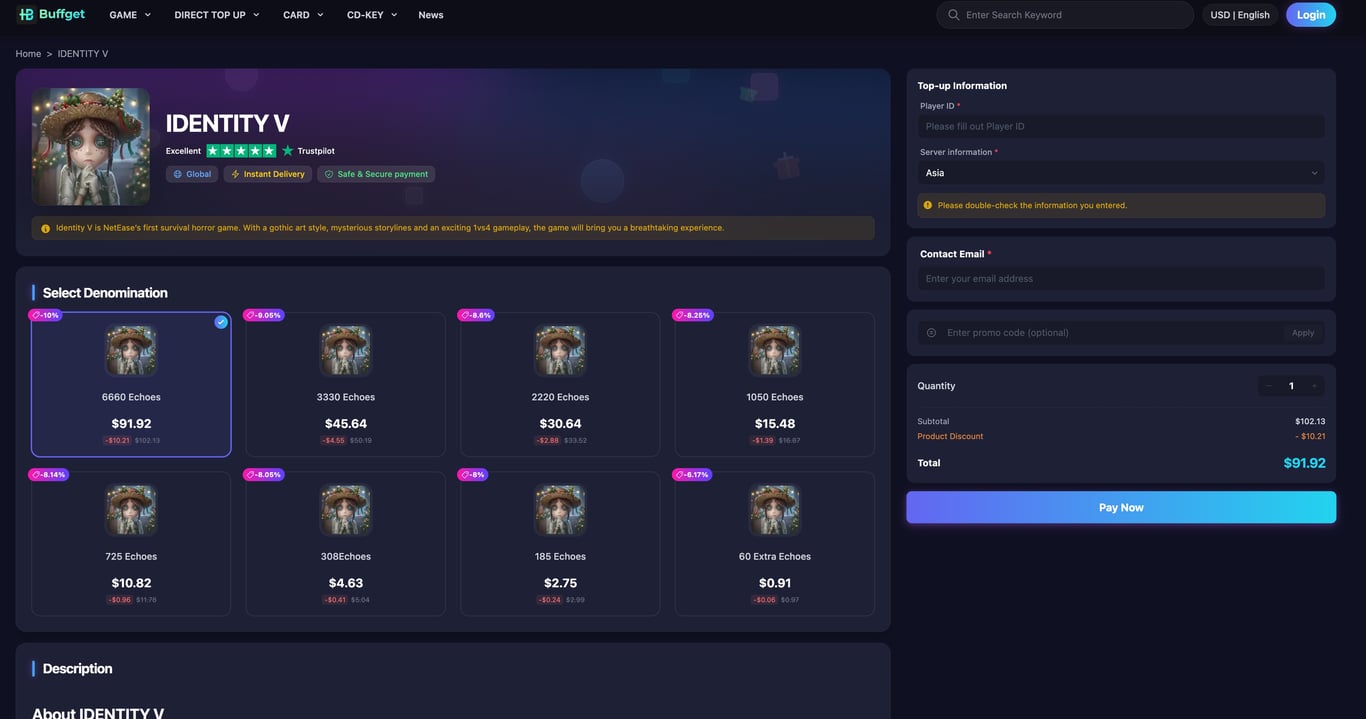 Since the 2024 rerun ended, save cheap Identity V Echoes and Fragments for future reruns (likely 2026–2027). buffget offers 80% off Echoes with safe, fast delivery—perfect for grabbing these rare skins before they vanish again.