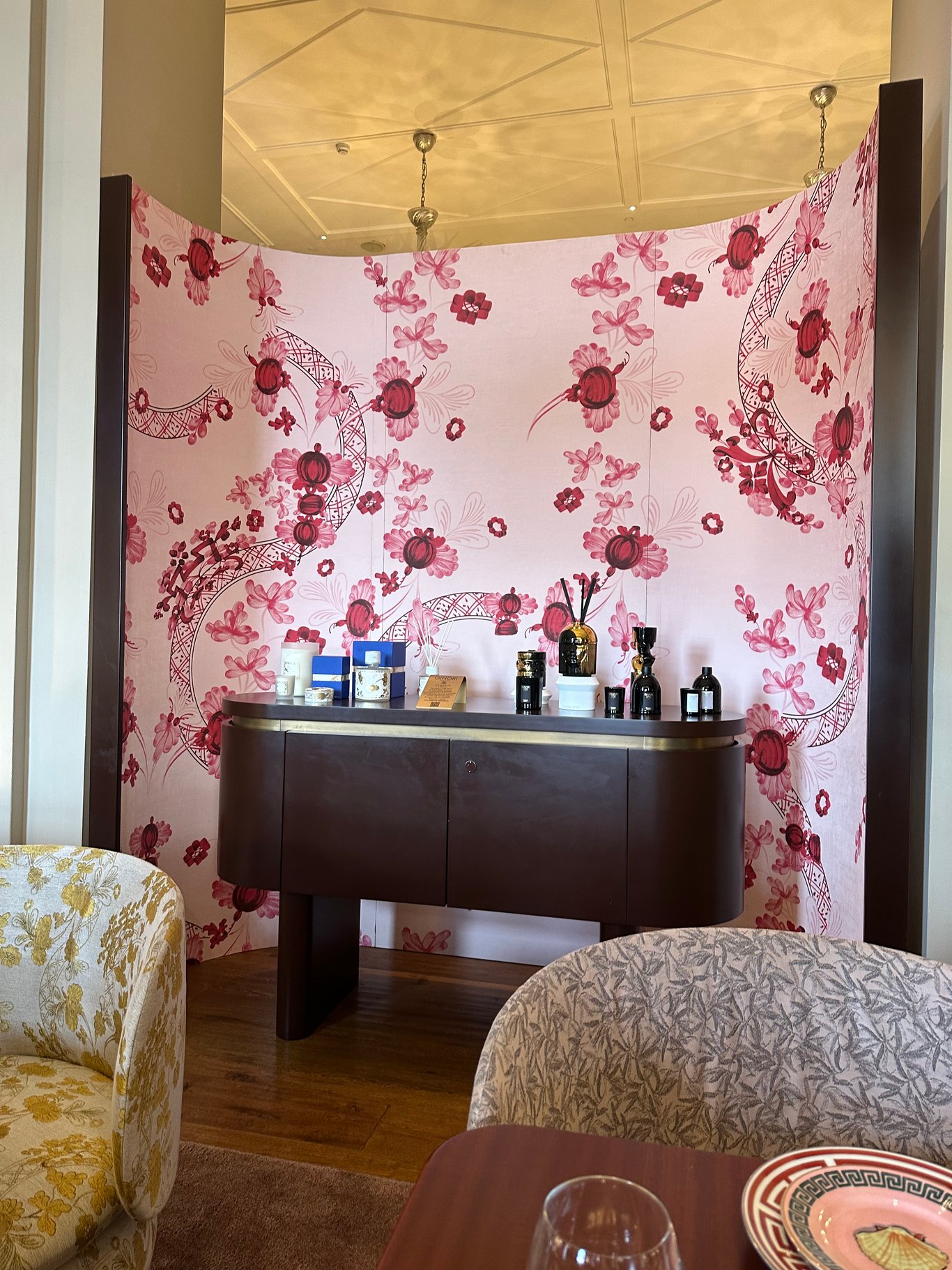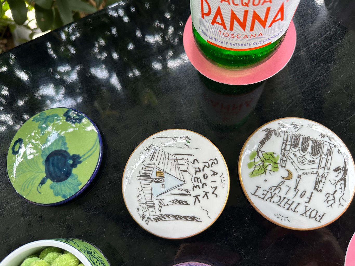 连这“大雨伞”都是很雅致的印花图案。某生点了他喜欢的old fashion。我就点了橙汁。我们边喝边聊。