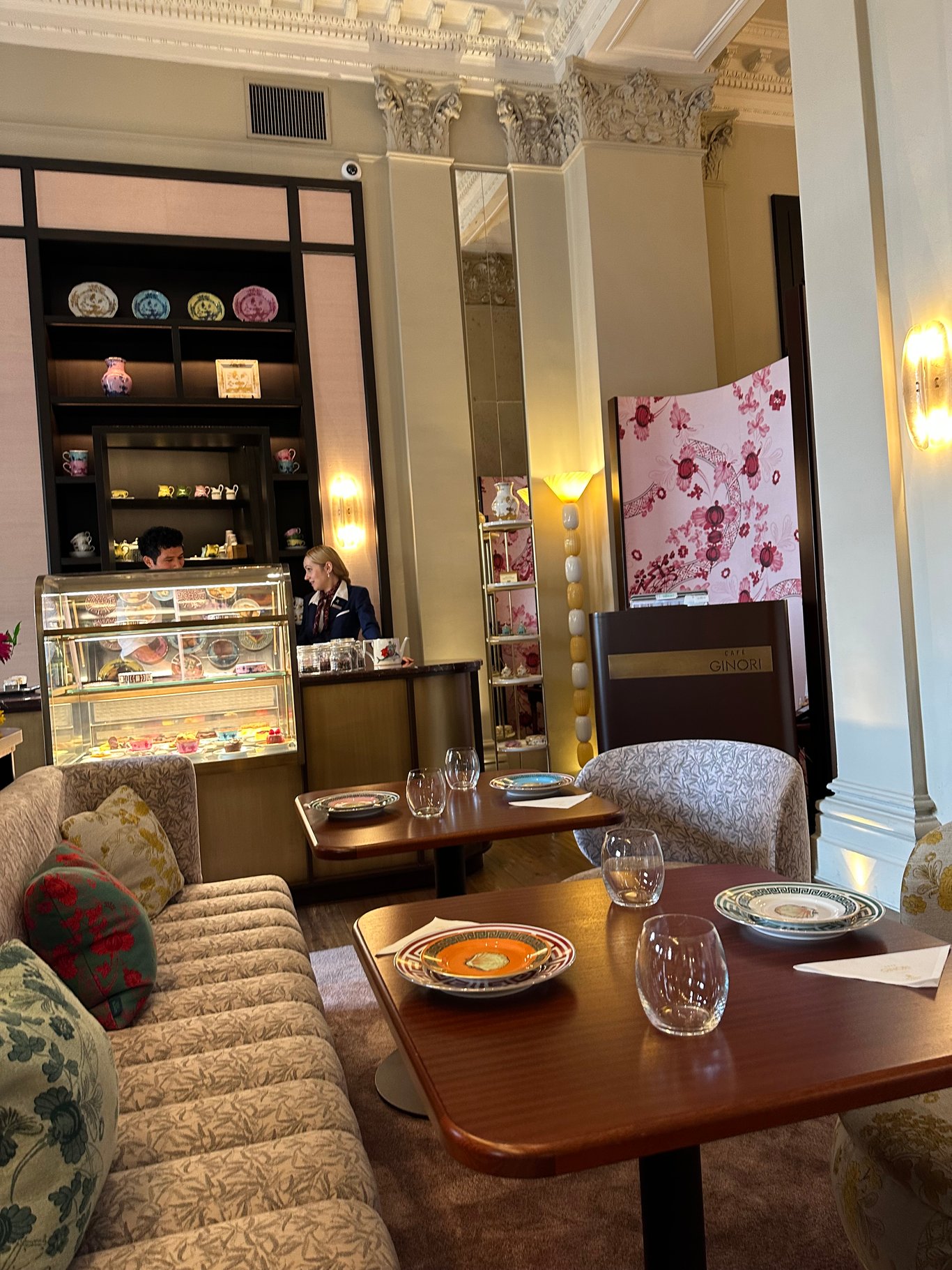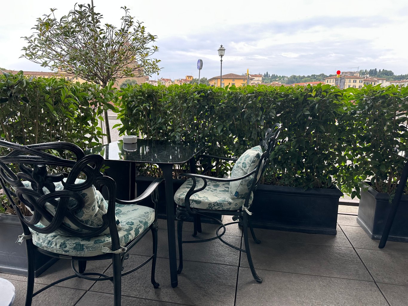 也许是时间很早,吧台并没有其他的客人。服务生让我们选位置坐,看到外面的气候并不热,我看到他们在户外有大雨伞篷下的位置,就选择了户外的位置。这样也可以看四处走动的路人。
