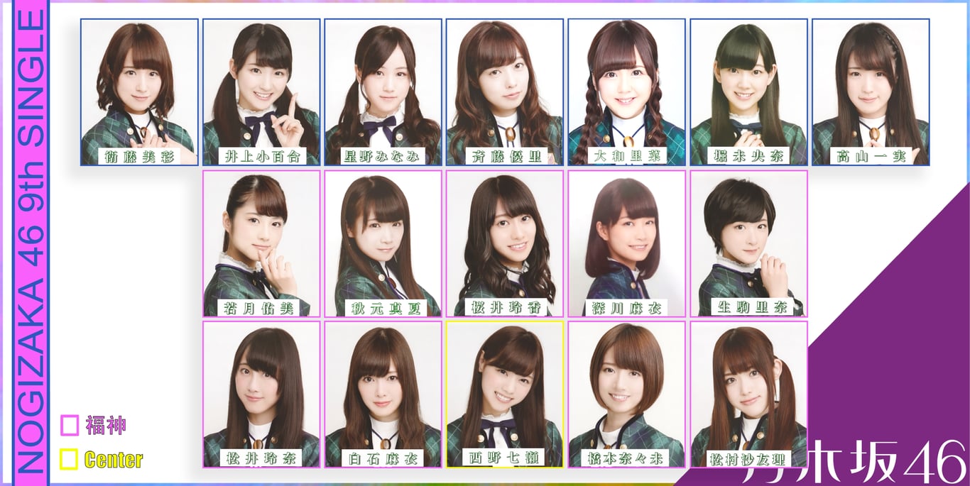 9單選拔發表,西野連任Center,是生駒之後第二人。亦是第二位多次獲選為Center的成員。大和里菜初選拔,星野、衛藤選拔復歸。另外,強援松井玲奈正式入列。