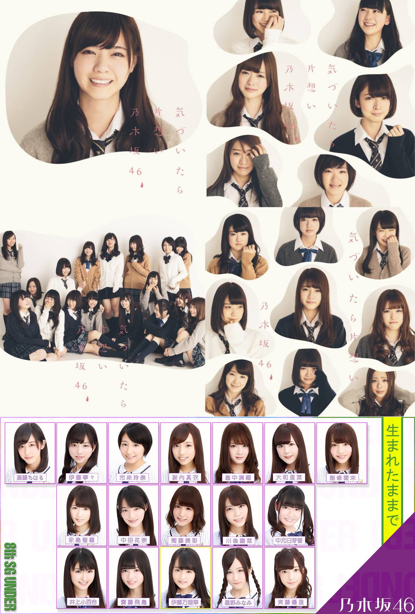 第8張單曲「気づいたら片想い」(察覺時已是單戀)發行,初動45.8萬張,第7度獲得Oricon週榜首位。Under曲「生まれたままで」(當出生時)Center為伊藤万理華。收錄曲「ロマンスのスタート」(浪漫的開始)為能量飲品「メガシャキ」的廣告歌,是雙方合作三部曲中的第二首。單曲銷量54.7萬,為2014年間第10位。