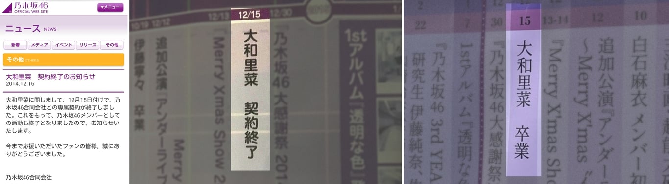 同日,大和里菜合約到期不獲續約,從團隊離開。此後長時間被官方定性為唯一非因畢業而離團的正規成員,直到十周年BDL官方更新團史時,才將「合約終了」改稱為「畢業」。