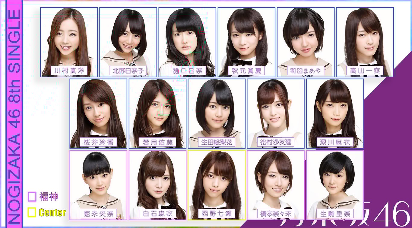 於「乃木坂在哪?」進行8單選拔發表,Center人選再有變動,由西野七瀬擔任。研究生北野日奈子昇格正規成員。樋口、和田初選拔;川村自出道單以來,久違地再進選拔。上一單的初選拔者只有堀留下,其餘衛藤、川後、中元三人全數落選。另外這次的選拔陣容,只有前排五位成員被列為福神,是人數最少的一次,因此亦中斷了松村長連福神的紀錄,令全福神成員只剩白石、橋本、生駒三人。