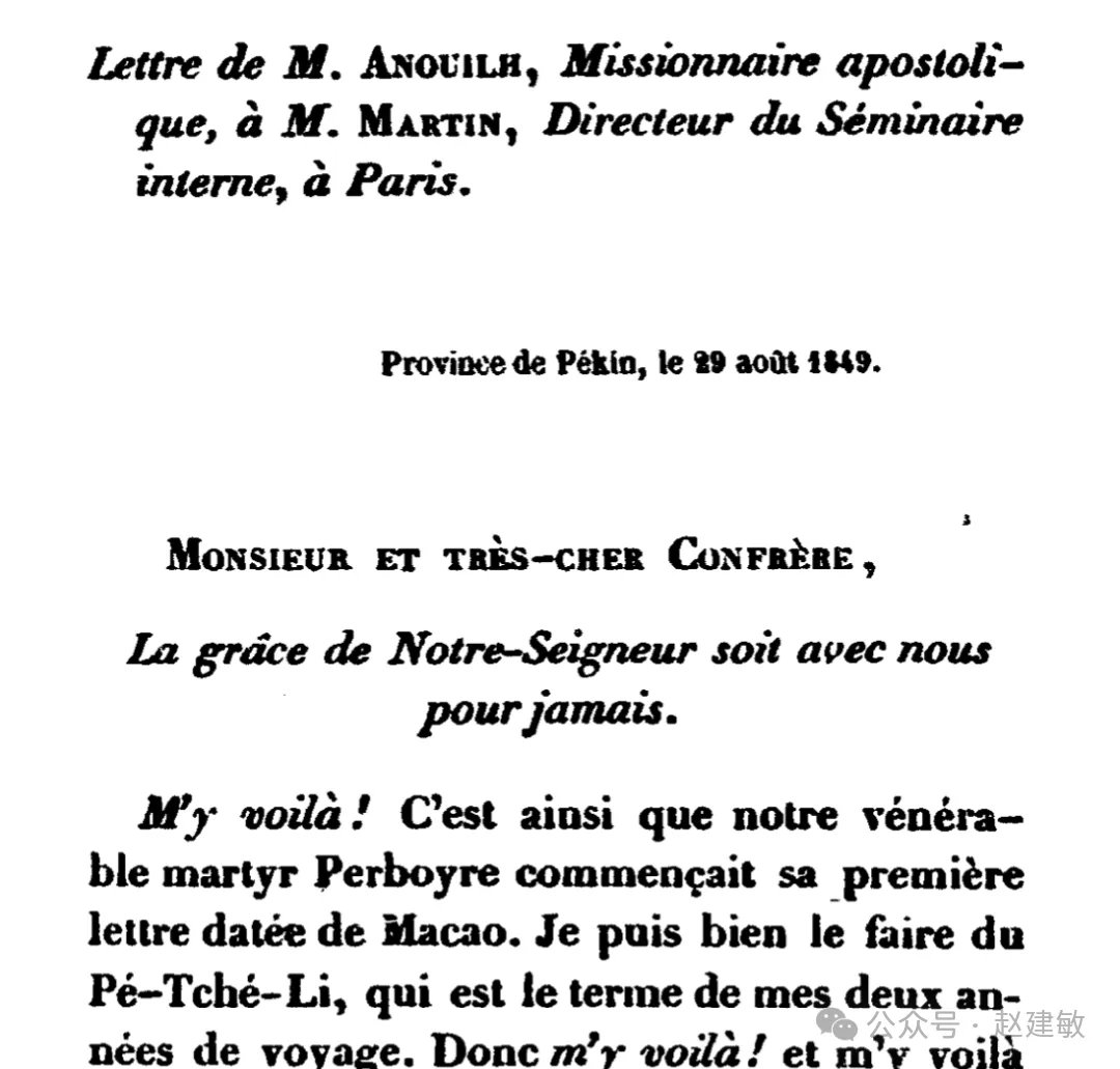董若翰(M.Anouilh)司鐸寫給巴黎神學院院⻓⻢丁(M.Mar-n)司鐸的信