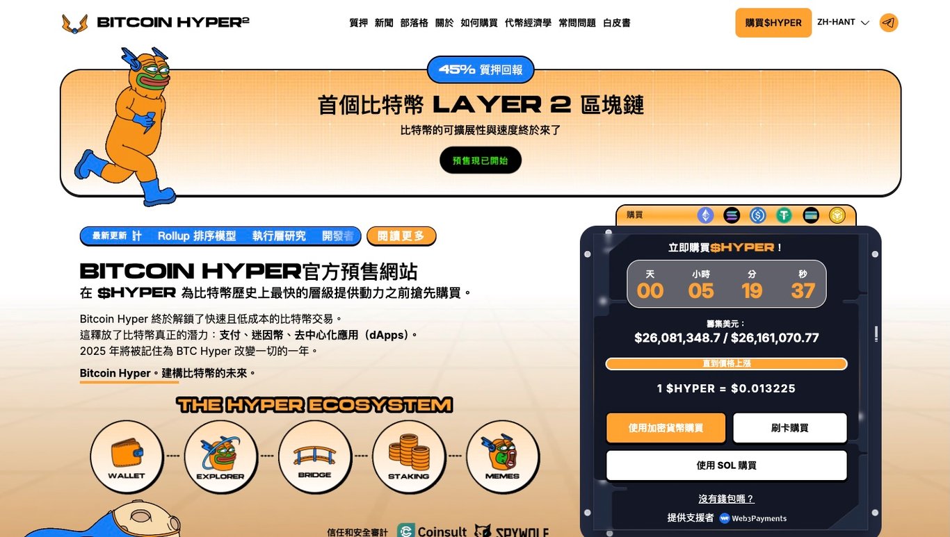 目前預售已籌集近 2,600萬美元,並於近期進入關鍵階段。分析認為,在比特幣生態持續擴展、應用層開發加速的背景下,具備實際用途的Layer 2計畫有望成為下一輪敘事的主導者,而Bitcoin Hyper正處於這場變革的前排位置。