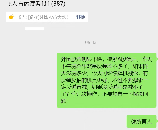 今天早上大盘低开之后,我开盘立刻又在读者群里分享: