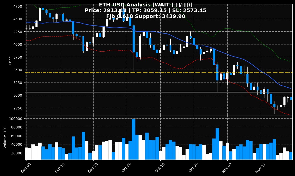 從技術分析圖中的重要參考數據可見,分析模型給出的TP(目標價)為3,084,而SL(止損價)設定為2,594.58,代表系統模型認為現時價格仍處於偏多可操作區間。更重要的是,圖中標示的Fib 0.18支持位3,439.90,這區域為中期反彈的重要目標。如果ETH能成功站上3,000並穩固,挑戰3,400至3,500區間將是下一步。