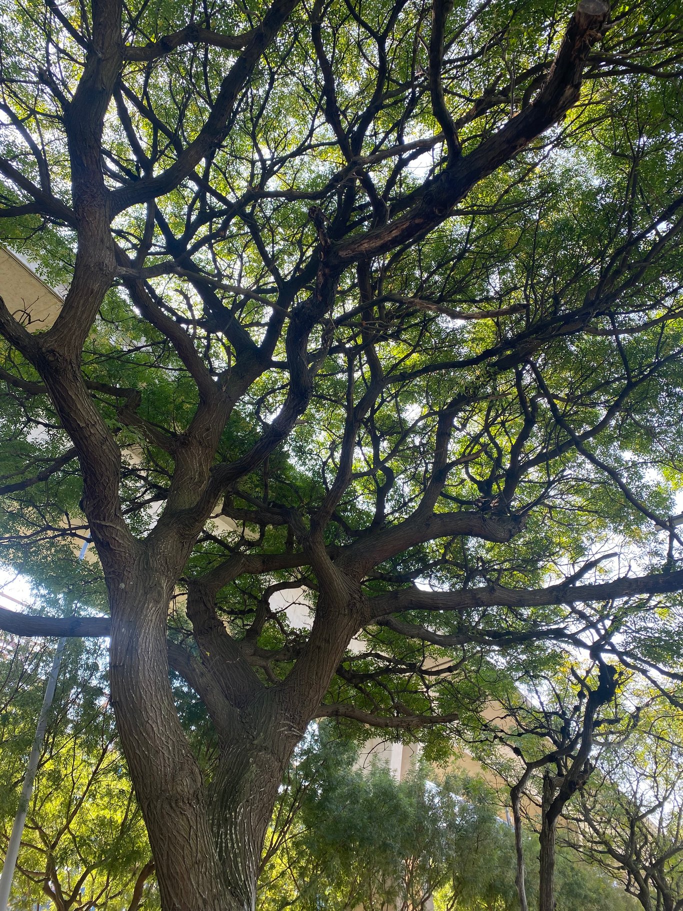 現在走過樹的身邊都會看一眼他們身上的名牌,臘腸樹?正當我疑惑的眼神往上仰望,一顆顆垂墜的怪狀物掛在樹上,非常奇特,上網查詢才知道果實有毒,還有人想要煮來吃。