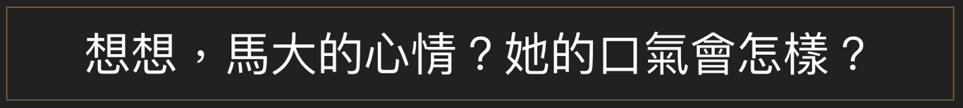先前我並沒有特別想馬大的心情和口氣,但這一次得要特別強調此刻的口氣,才能連結到後面馬大和耶穌的對話內容。孩子們大約都能體會此刻失去弟弟的傷心,埋怨耶穌不早點來的心情。