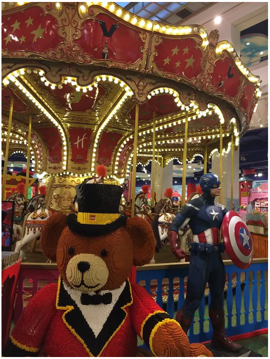 但卻容納一整個完整的旋轉木馬,多座比人高的漫威英雄跟變形金剛,