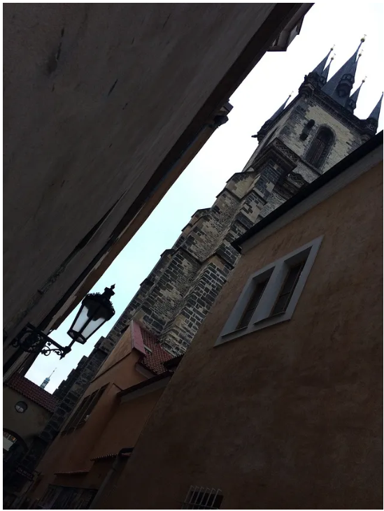 走在窄巷裡面,看著 Chrám Matky Boží před Týnem 卻怎麼都走不到,