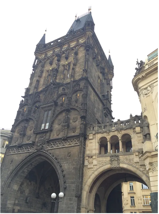 走著走著經過火藥塔的旁邊,看著它的黑污,屹立在那,成就著歷史。