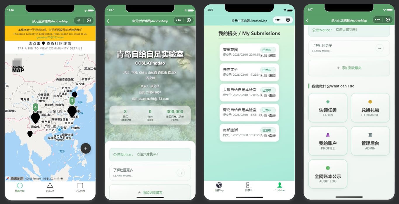 多种多样的共识社区们正是对多元生活与价值的现实践行,也是对单一化的社会价值起到制衡作用。“多元生活地图”(AnotherMap)是家园计划(AnotherLand)三个实验中的“沟通实验”的最新进展。在地图中漫游,你可以探索发现不为人知的某个共识社区,然后经过线上资料的了解,有一天通过认领社区发布的一个任务,例如邀请你开办一场沙龙、举办一次工作坊、参与一次集体劳动等,你会在现实中踏入社区,走入“附近”,完成任务,获得相应数字礼券:共识券(CV),接着,可以使用共识券在地图上的所有社区兑换不同的服务、作品或产品。