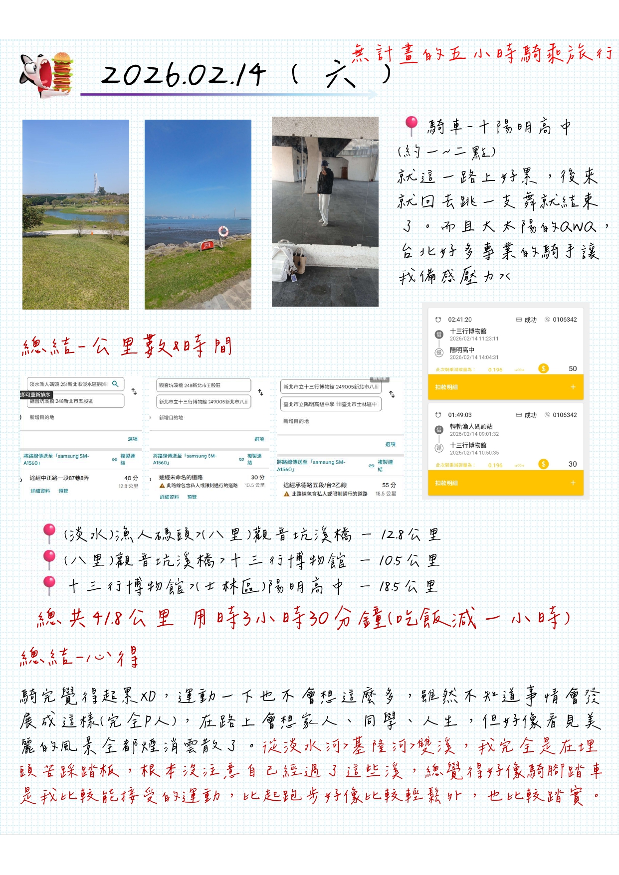 騎車 - 十陽明高中(約一~二點):就這路路上好累,後來就回去跳一支舞就結束了。而且大太陽的 QWQ,台北好多專業的騎手讓我備感壓力 ><。