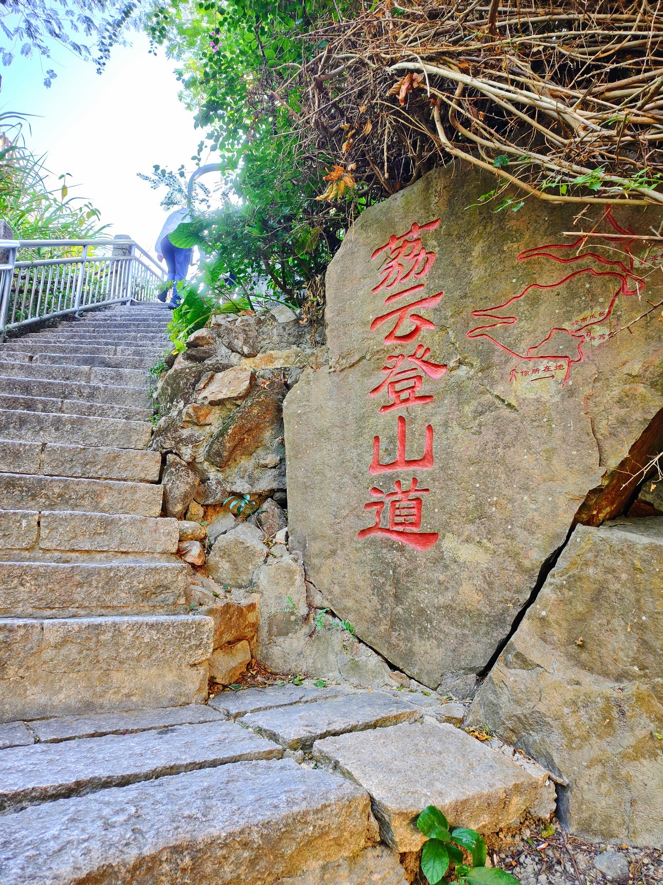 塘朗山登山步道距離我們才四個地鐵站。途中發現許多家庭扶老攜幼都要去這山上走走,更讓我有這座山很容易征服的錯覺。等到一進入登山口後,那還算陡的角度很快就讓廠長與工程師氣喘吁吁,要求休息。再走上一段後,他們兩人明顯的不想再爬了,我們就約定好,J 跟我上到第一段的觀景處青雲台之後,就下山折返與他們會合。
