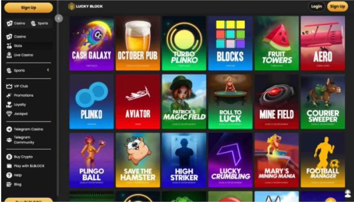 Lucky Block於2022年在庫拉索成立,是少數同時擁有庫拉索與Anjouan雙重執照的加密娛樂平台。它以安全、快速、匿名為核心,支援22種加密貨幣支付,包括BTC、ETH與USDT,最低存款僅需0.0001BTC。玩家也能使用Visa與Mastercard購買加密貨幣,實現傳統金融與Web3體驗的結合。平台擁有超過7,000款遊戲,其中4,000款為比特幣老虎機,並採用可驗證公平技術確保結果透明,同時提供真人賭場、視訊撲克與Plinko等多樣玩法,介面簡潔流暢,適合新手與高階玩家。