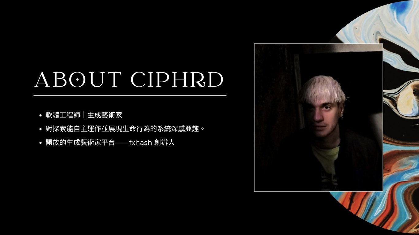 Crespy 從九、十歲開始學習程式設計,最早是做遊戲和網站。幾年後他意識到自己對數學與視覺的興趣可以轉化成創作形式,於是開始創作生成式藝術。他的網名「Ciphrd」來自英文單字 cipher,意思是「加密」或「編碼」。