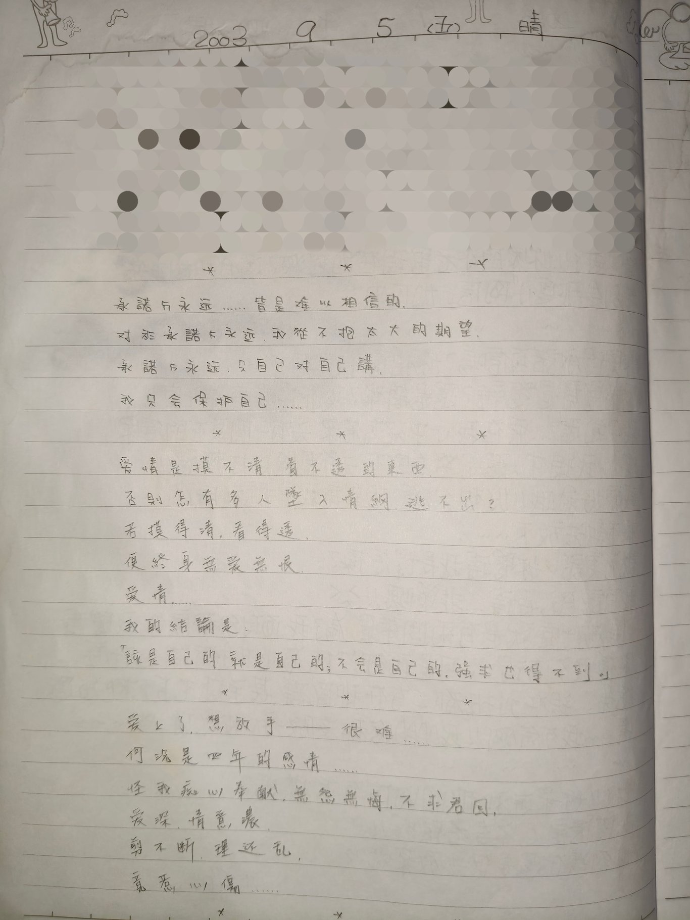 《動態回顧》2003下半年〈交換日記裡的心情小語〉