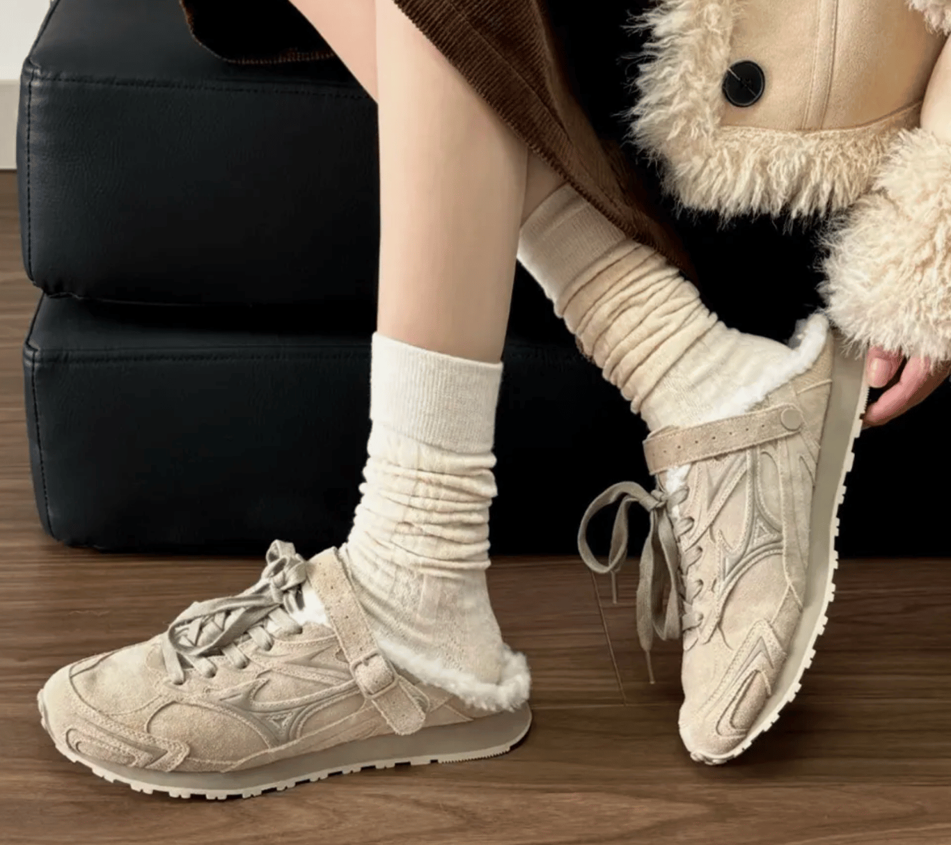 麂皮 × 厚實刷毛,一睇就有冬天氛圍,就算你全身簡單,腳下都會即刻「到位」。