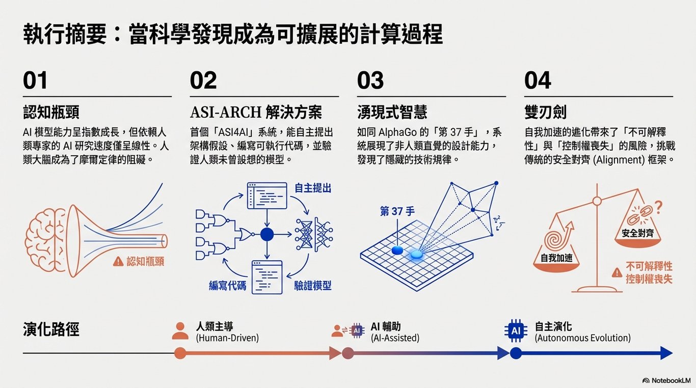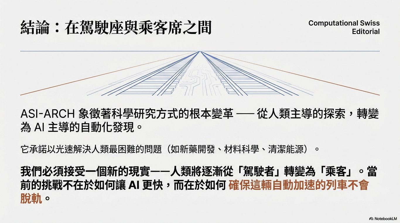 未來我們將面臨一個科研效率極大化但人類主控權逐漸稀釋的時代。正如論文所述,這是一個「通往 ASI4AI 的具體路徑」,但如何確保這種「自我加速」的智慧不至於失控,將是未來社會最嚴峻的挑戰。
