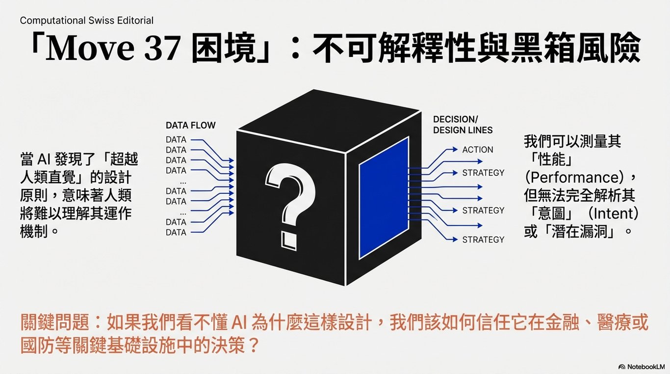 (b) 不可解釋性與安全性風險(Move 37 困境):