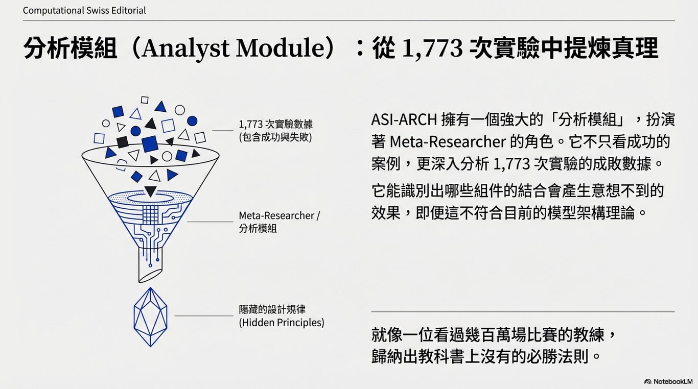 ASI-ARCH 的直覺並非憑空而來,而是透過一個特殊的「分析模組(Analyst Module)」發展出來的: