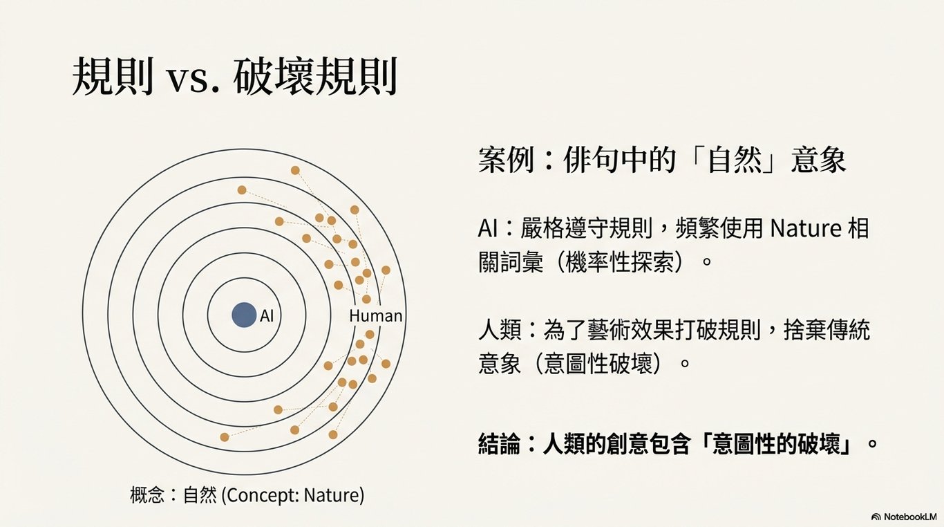 儘管 LLM 能在 DAT 等任務上取得高分,但我們必須認識到,其達成高分的底層機制與人類的認知過程截然不同。雖然最終的輸出可能相似,但其過程卻是根本性的差異:LLM 依賴對潛在表徵的迭代轉換(iterative transformations of latent representations),而人類的創造力則植根於具身經驗(embodied experience)、記憶與意圖。