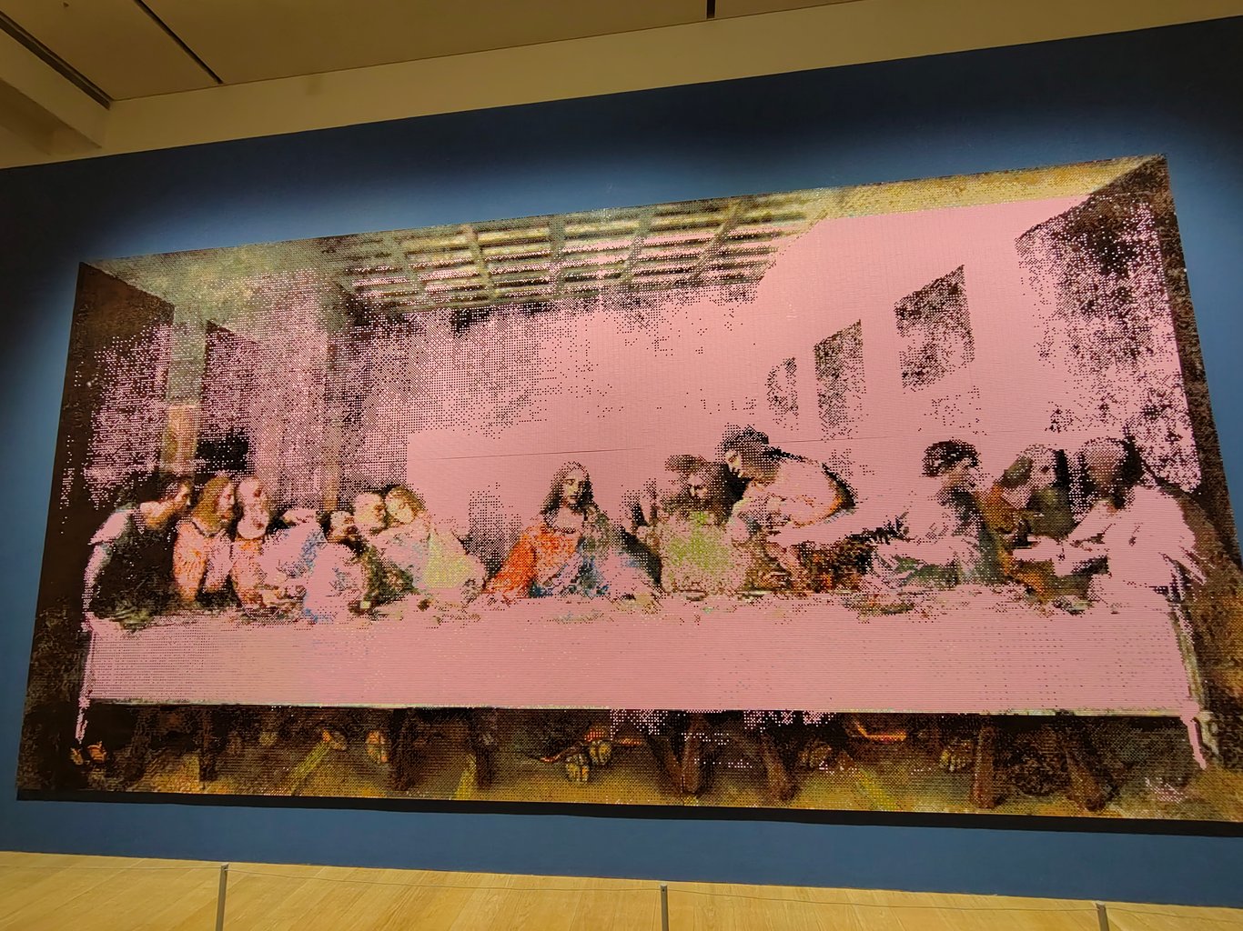 三樓另一區就是許多藝術家綜合展出的作品。我印象最深的就是艾未未的《最後的晚餐(粉紅)》(The Last Supper in Pink)。這作品運用37萬個樂高積木打造的現代藝術作品,向達文西經典名作致敬。聽說他也把自己做進作品中了呢~