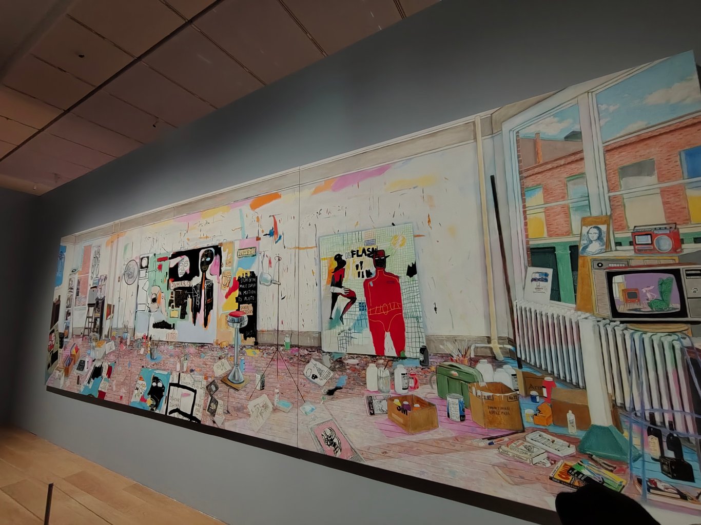 另一幅很喜歡的作品是達米安·艾爾維斯 (Damian Elwes) 《巴斯奎特在克羅斯比街的畫室》 (Basquiat's Studio on Crosby Street)。畫中呈現許多細節,特別是電視螢幕中播放《粉紅豹》卡通以及收音機上《蒙娜麗莎》的小型複製畫,都讓人覺得莞爾一笑。