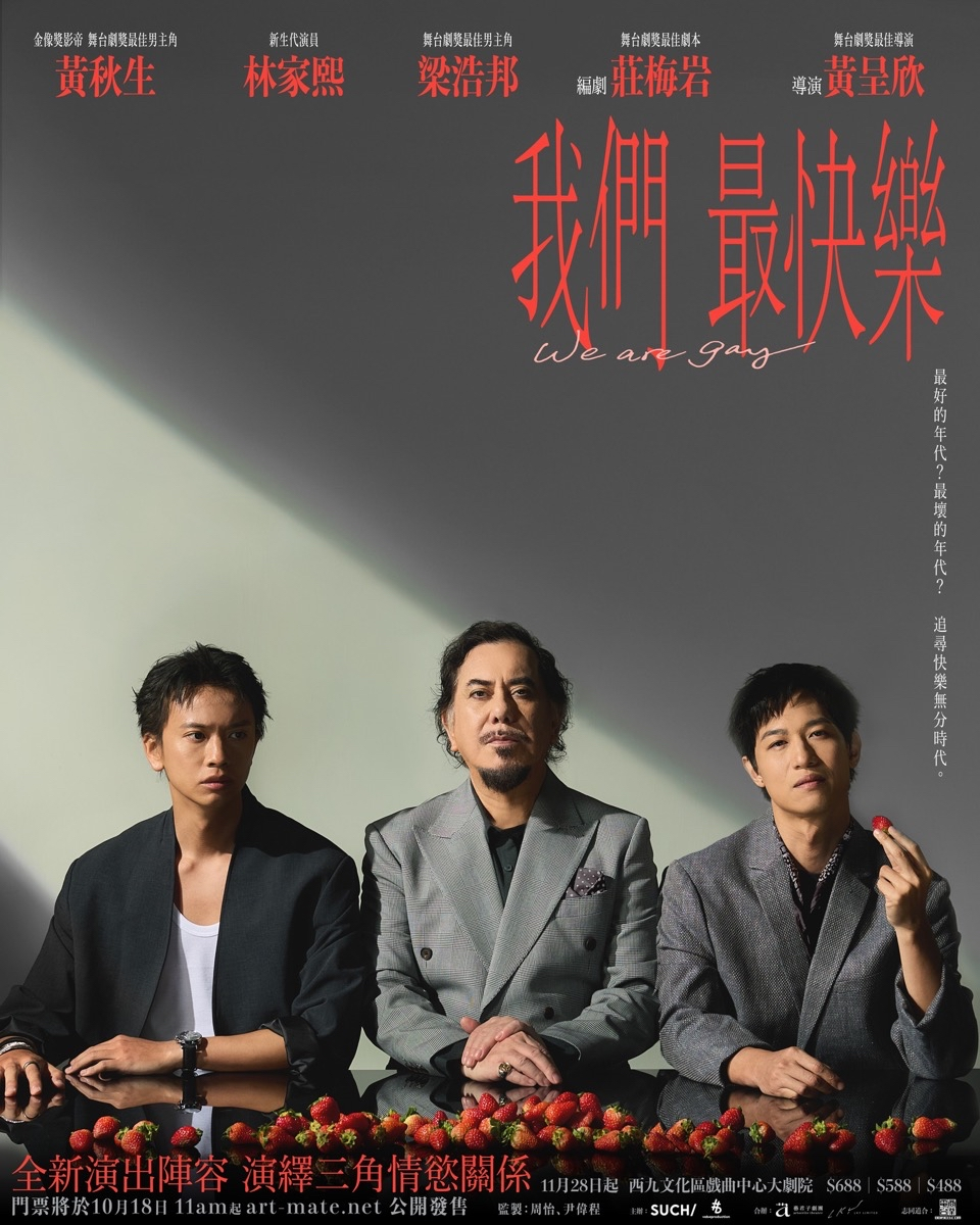 莊梅岩的戲劇一般較為寫實,但《我們最快樂》實驗性較強、較為抽象,又有較偏鋒的劇情、涉及性愛與裸體,剛好與藝君子劇團「色、性、裸、暴」的四大美學元素契合。黃呈欣坦言答應前也有掙扎 —— 一向走實驗路線、較少接觸普羅觀眾,她選取的呈現方式,製作團隊接受到嗎?以往演員皆是合作多年、又有默契的朋友,這次有德高望重的前輩、明星參與,過程可順利溝通嗎?
