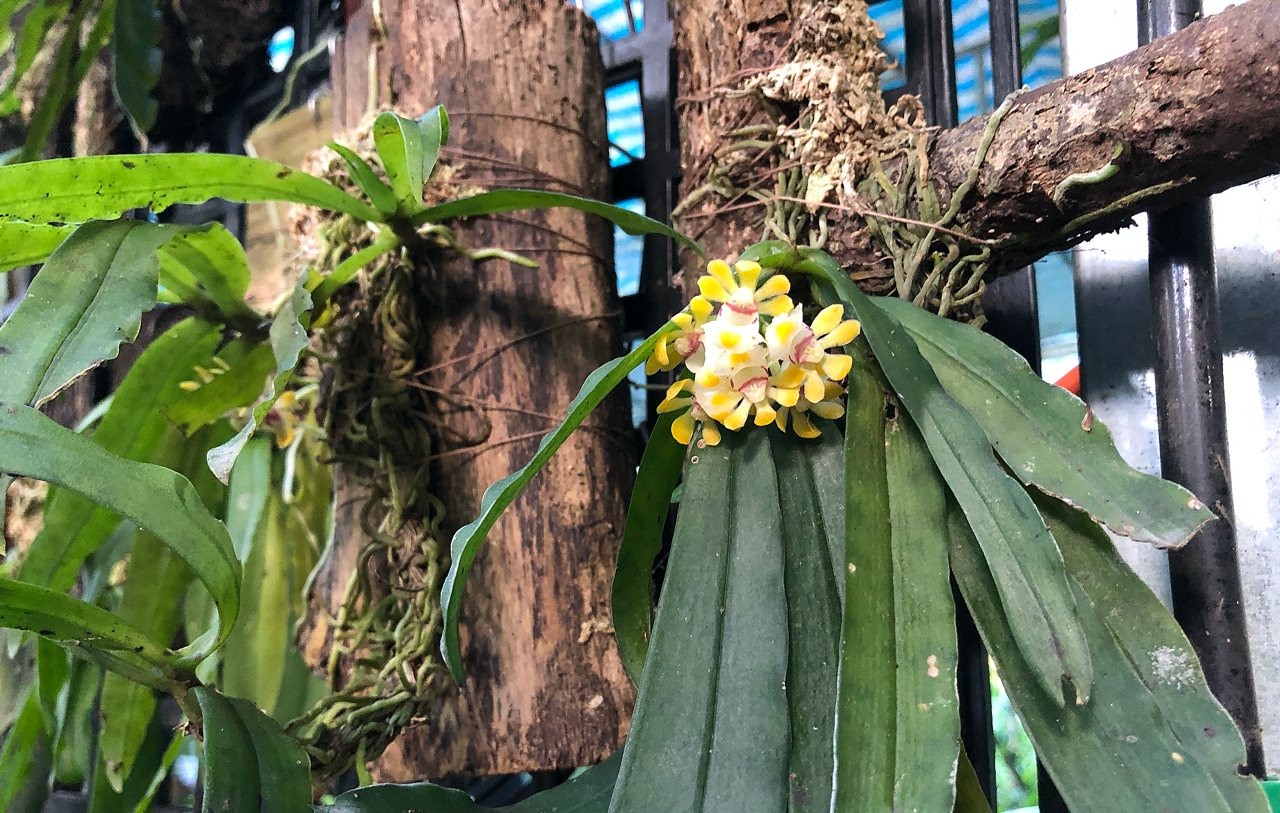 園區內有 7 種朱紅捲辦蘭,花色包含紅、黃、蘋果綠等,顏色變化豐富;黃穗蘭,開花時如稻穗垂墜非常迷人。這些都是原生種。