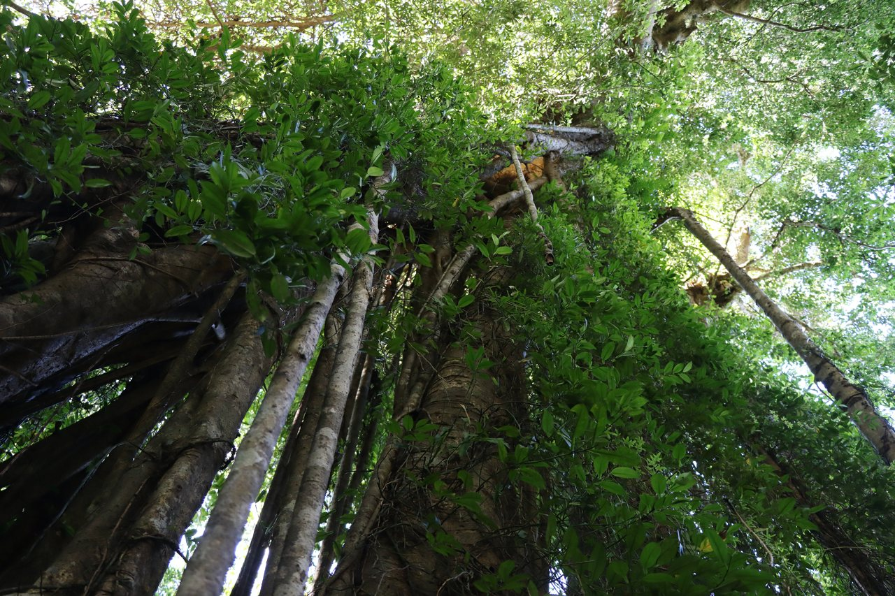 「千年神榕」最神之處在於整體環境的完整性。人身處其中,不只能感受神榕帶來的感動,還能輕易看見穿山甲的洞穴,而森林底部有種類繁多的草相,蟲鳴陣陣,也有各式蕨類、姑婆芋在陽光下輕輕搖擺,至於榕樹區邊緣殼斗科大樹林立,鳥兒在枝頭上跳躍、高歌。