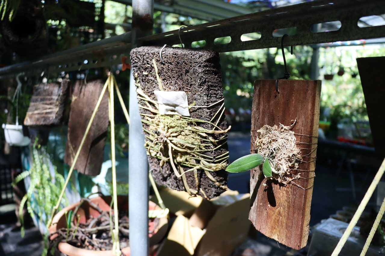 園區內有一面牆是植物的「加護病房」,只要植物發生病蟲害,都會被移到此處隔離。洪英珠說:「尤其是蘭花的生命力很強,這些明明根部已經腐爛,可是過幾個月後又會再長出新芽。」