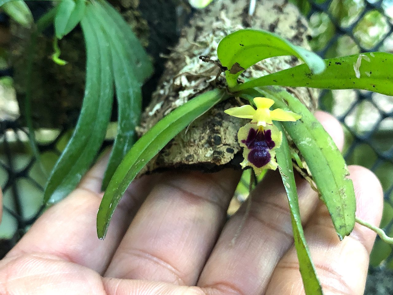 五年前,黃月葉在溪谷看到茄苳樹斷木,走近一看,發現上面附生一株台灣蝴蝶蘭,她擔心蘭花泡水腐爛,於是帶回家整理、復育。「台灣蝴蝶蘭是我們這裡的原生種,棲地很小,我還幫它授粉復育,一年前把復育成功的植株種回原生地。」