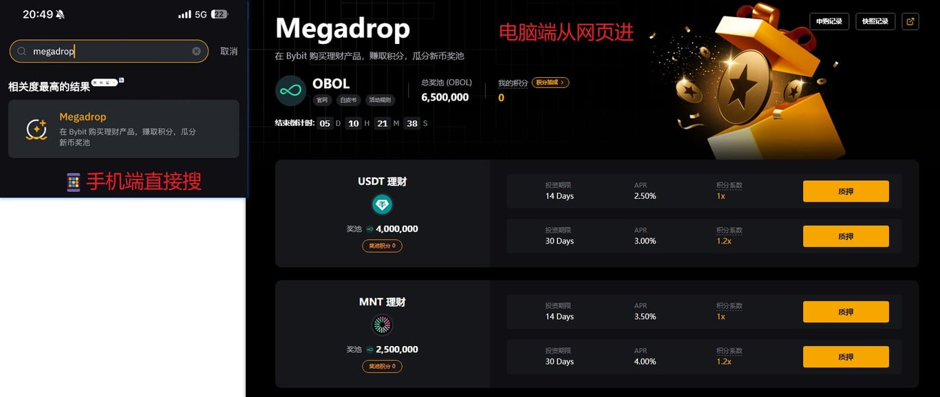 ① 电脑端:www.bybitglobal.com/ ② bybit手机端,先注册www.bybitglobal.com/ ,注册完在App顶部搜:Megadrop