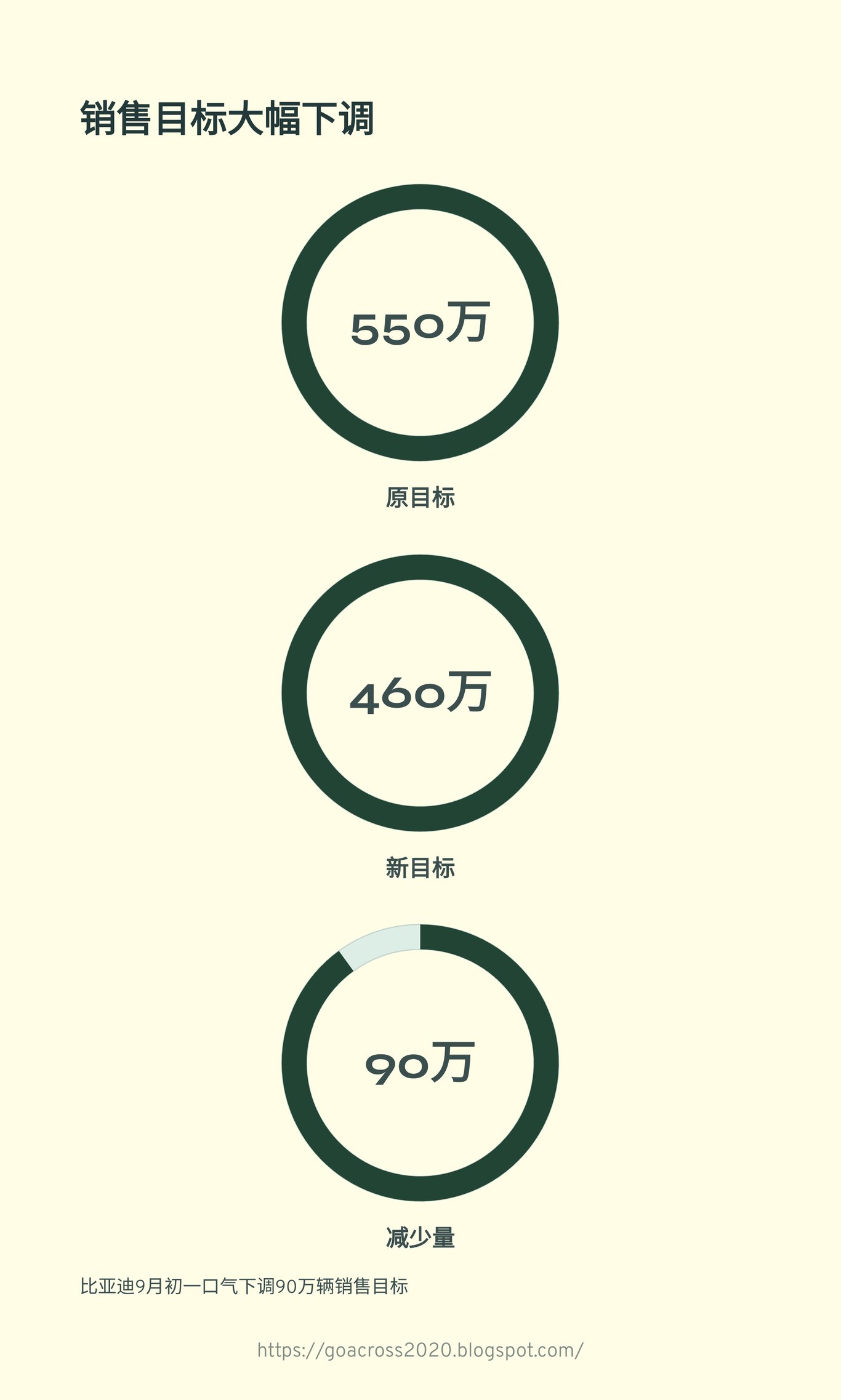 年度销售目标从 550 万下调至 460 万,直接减少 90 万。