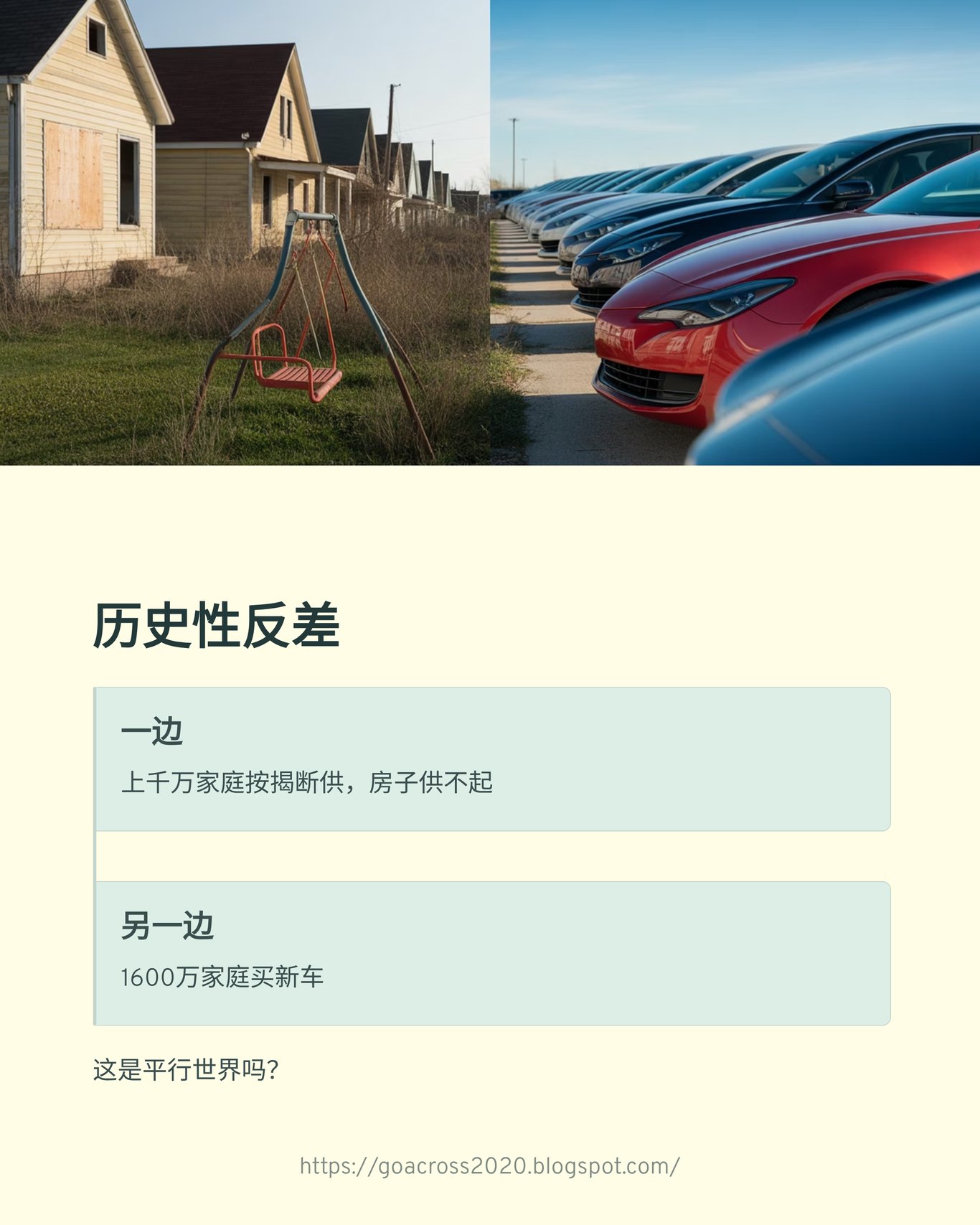 出现“法拍房上千万”与“1600 万家庭买新车”的矛盾场景,暗示销量数据或存在虚增。