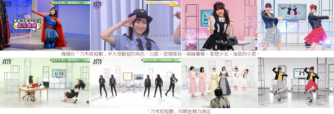 四期生專屬節目「ノギザカスキッツ」(乃木坂短劇)開始逢週一深夜(週二凌晨)於日本台播出。節目主旨為四期生在資深搞笑藝人帶領下,挑戰搞笑短劇。節目由四期生的老熟人「再見青春之光」負責主導,雙方此前已合作多時,而四期生今回亦傾力以赴,一改過往給人的散漫印象,即使演出中失手甚至跌倒,仍堅持下去,面對來訪的專業藝人也不怯場,還屢屢與森田及東二人擦出有趣火花,讓人驚喜。