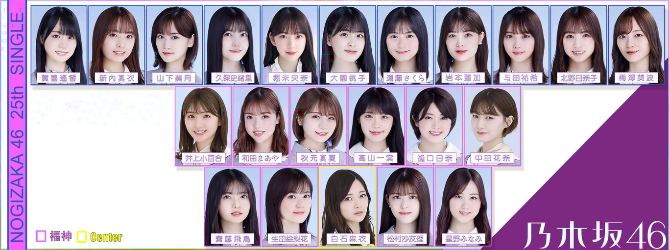 25單選拔發表,再次擴編至22人,由於本作為白石畢業單,故安排了全體在籍一期生担任福神,其中多人為首次担任或相隔多年重任。而三排則有破紀錄的十一名成員,包括:二期生三名、三期生六名、四期生兩名。