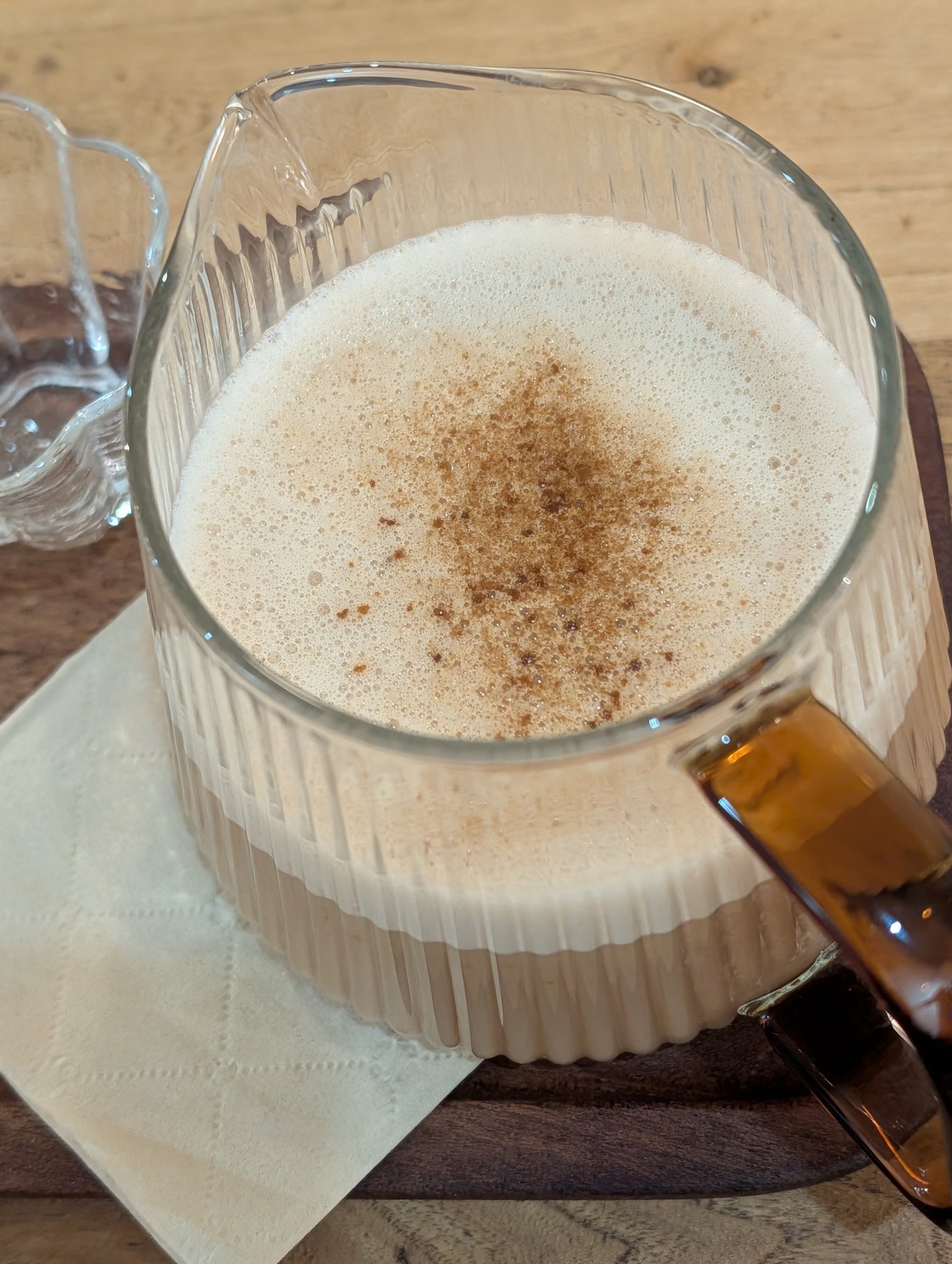 這家位於台南的蔬食咖哩飯也有賣咖啡跟飲品、甜點,店家內的環境非常舒適放鬆,很有日式風味,搭配日式音樂,彷彿回到日本一樣,非常慵懶舒服。擺盤都很有特色,飲品也不是隨便做做,無論是咖啡還是這次點的燕麥奶紅茶,都是濃醇好入口!