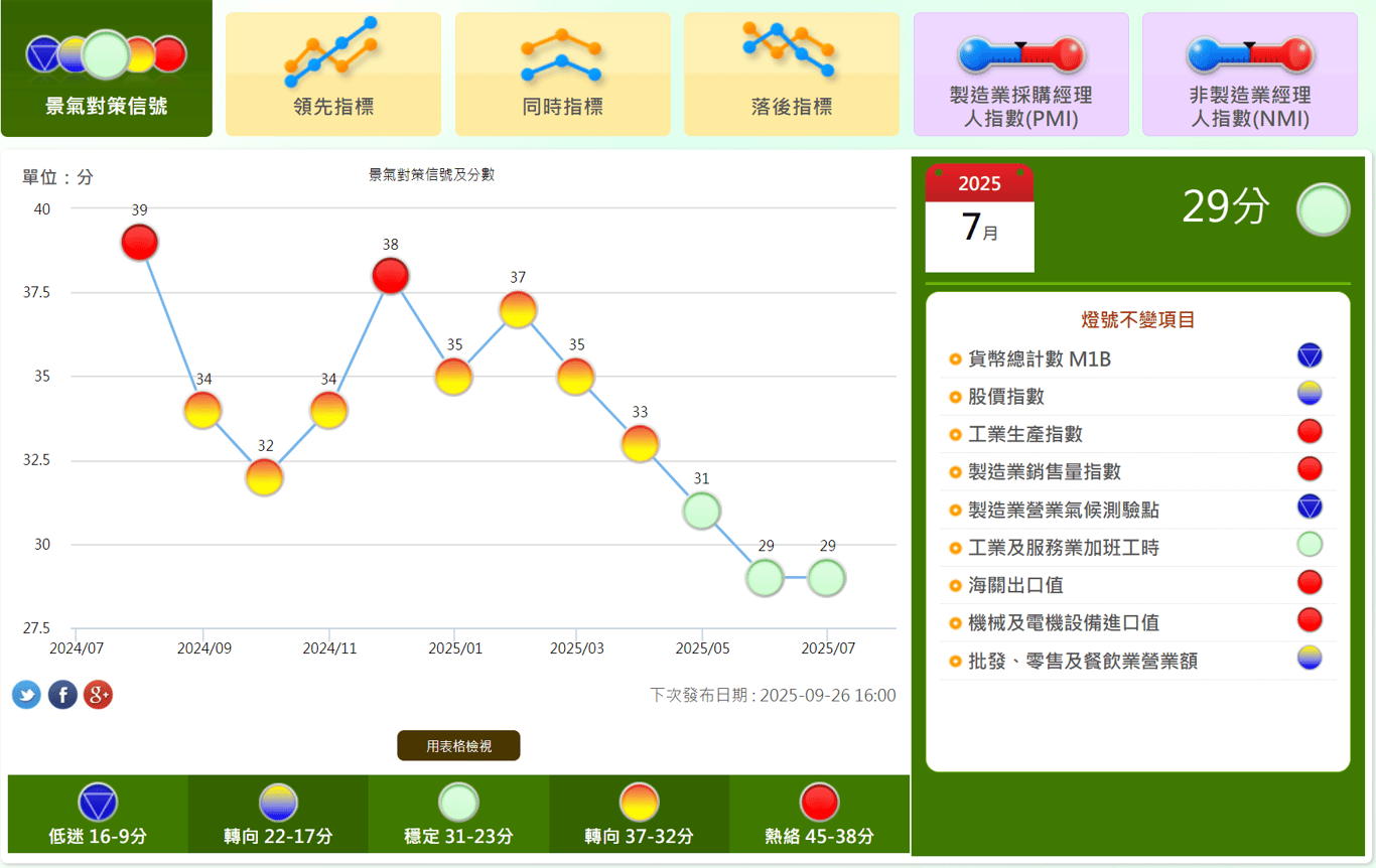 28 分代表景氣偏熱,但還不到過熱。