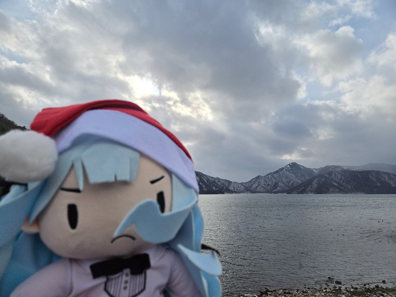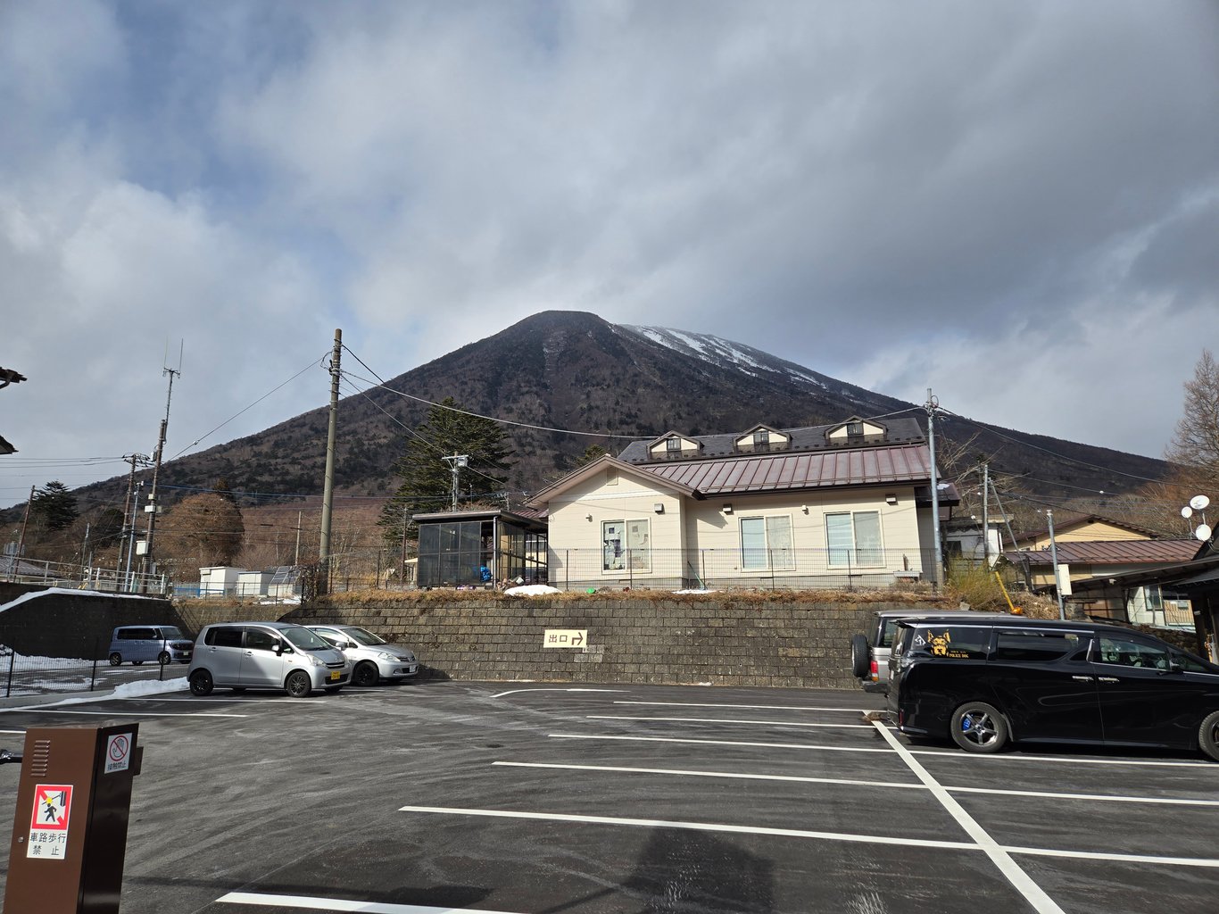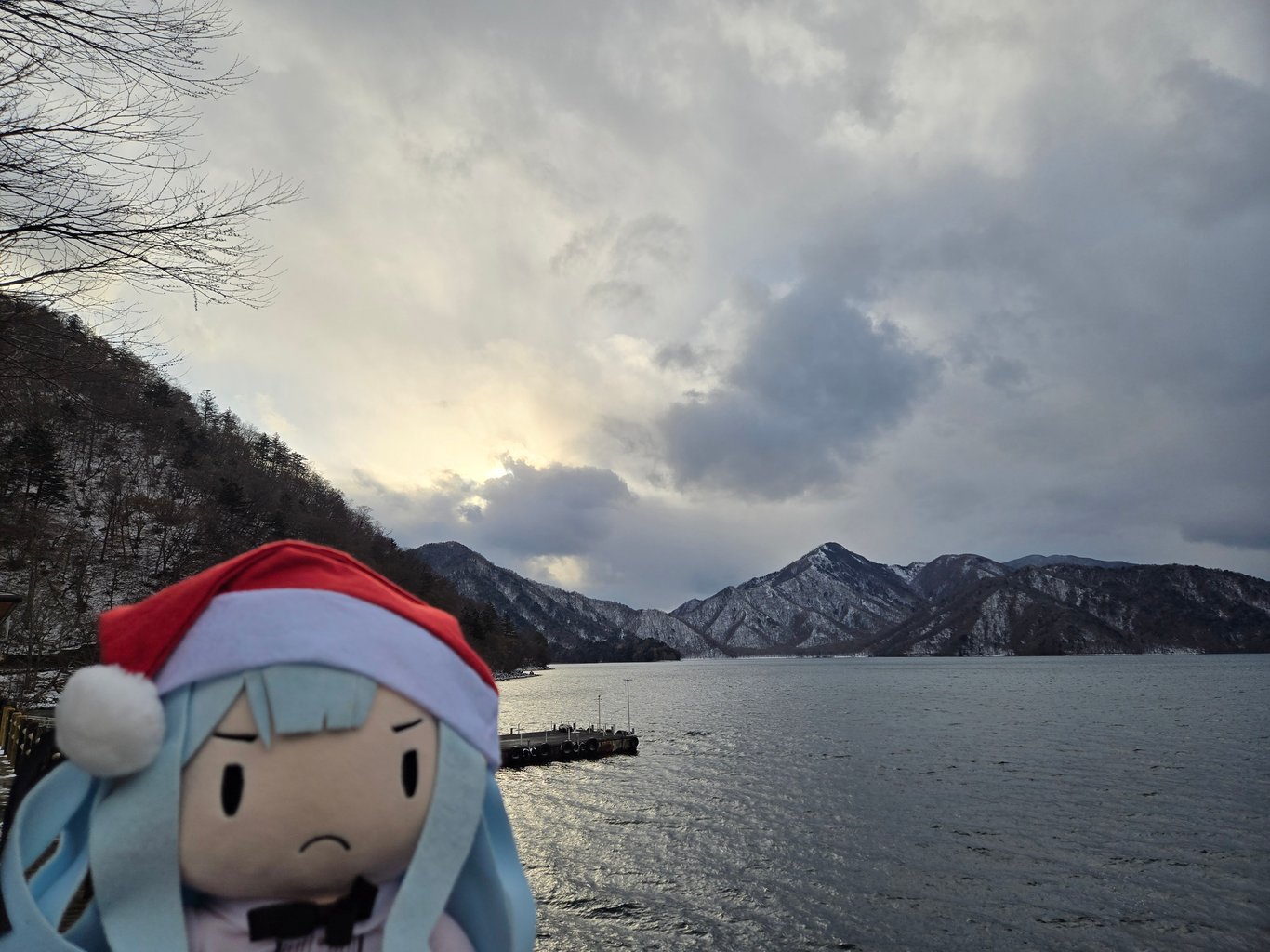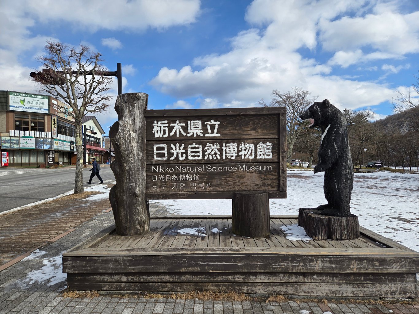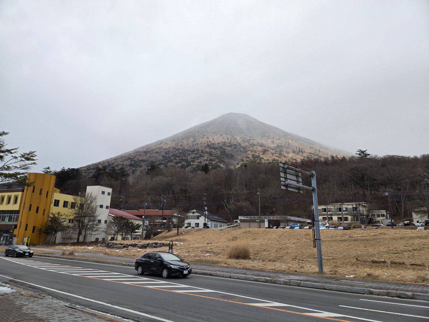 在教堂对面坐上了公汽,前往中禅寺湖。车走了很长的路,一路上不断地转弯,摇摇晃晃,我看着外面积雪的山谷,我才意识到,中禅寺湖是在高海拔的山里,离日光寺社的距离比纸面上远很多。自然交通费也是令人咋舌,单程1200多日元。到了中禅寺湖,空气更加纯净,路边到处都是残雪,点缀了残雪的男体山就矗立在城区里,让我想家了,想起了家里的大黑山。我查看了时间表,发现战场原出发回来的车最晚一班在四点,时间上肯定是不行了,就准备一下午都在中禅寺湖。如此也是不着急,就吃了个午饭。中禅寺湖这边的商业服务倒是不少,不过我才知道,日光本地的特产是薄豆皮,日语叫汤叶的东西。倒不难吃,但没什么价值,就和日本其他旅游特产一样。