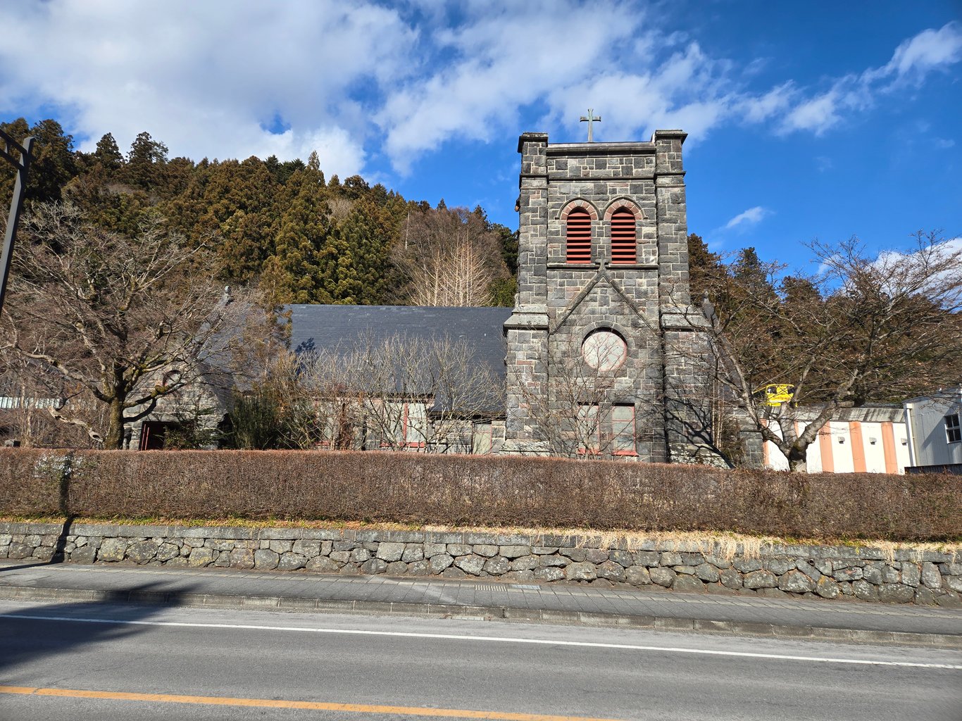 离开寺社一带,我惊讶地发现——我怎么没钱了?全被日光寺社的各种收费项目绞杀一空。我想下午要去中禅寺湖,山里也不知道能不能取钱,就赶紧走到山脚下的邮局取了钱。邮局路对面有一间石头教堂,很显眼,是圣公会的礼拜堂。在帝日时期,洋人畏惧季风区的夏天,就像他们在南亚东南亚那样,来了日本之后也四处寻找圈占避暑胜地和度假区,其中以英国人势力最大,因此关东不少胜地都有圣公会教堂。不过时间紧急,且周一教堂也不开门,我就没进去看。