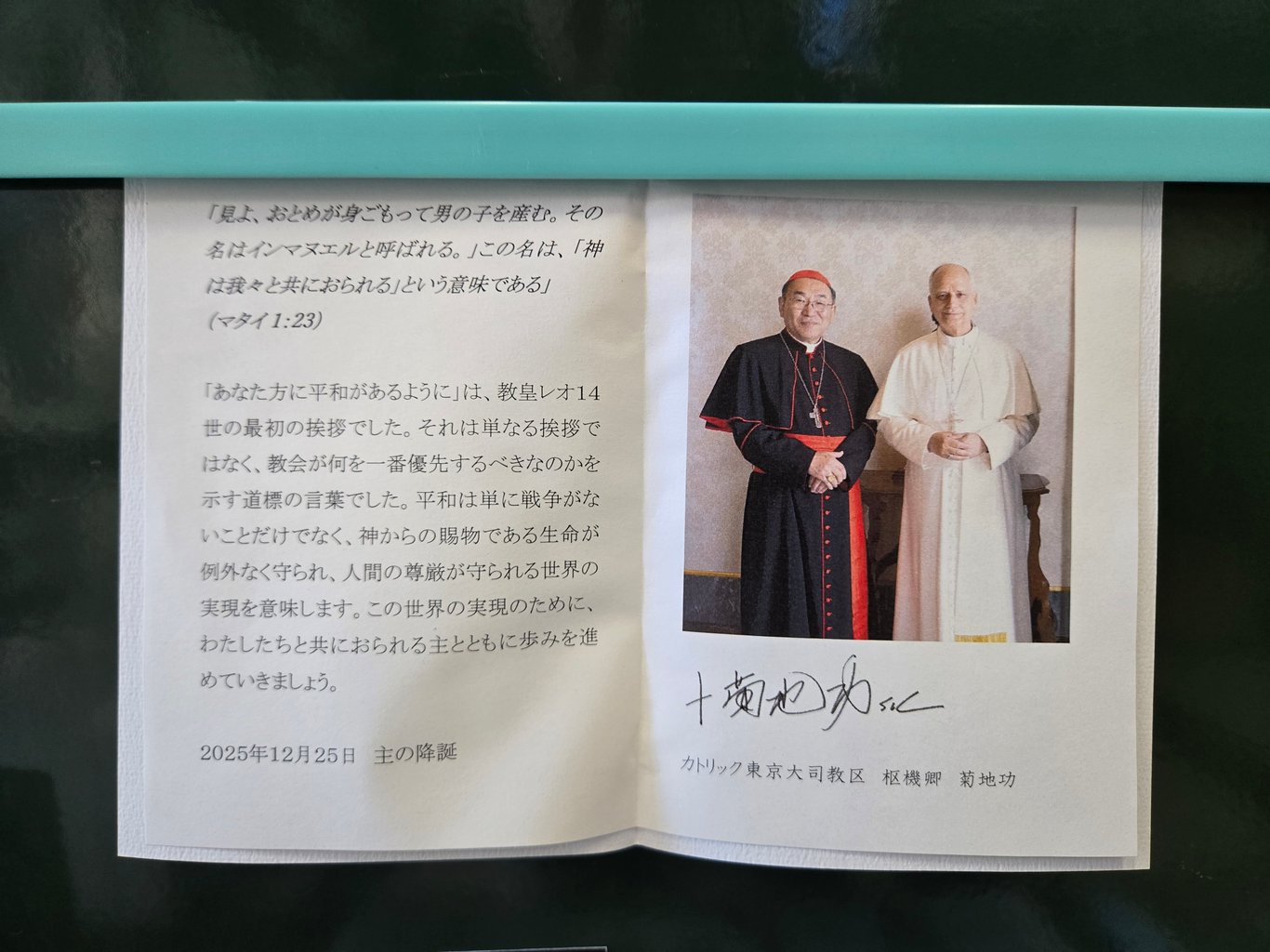 下午自然去中国人那里望弥撒,天主之母节的弥撒才是正经事。在堂区的通知栏上,看到又贴了新的卡纸,是菊地功和新爹合照的照片。