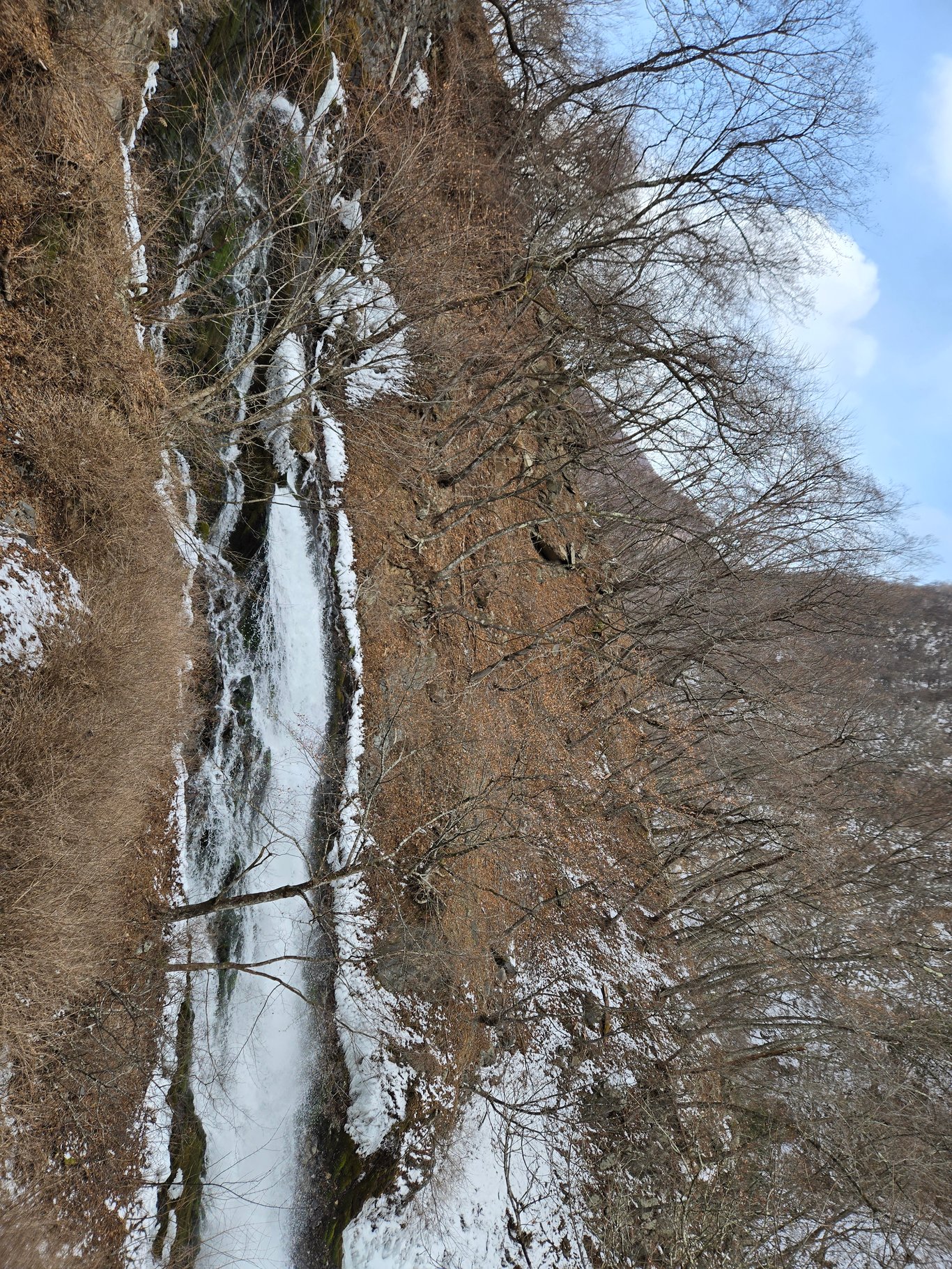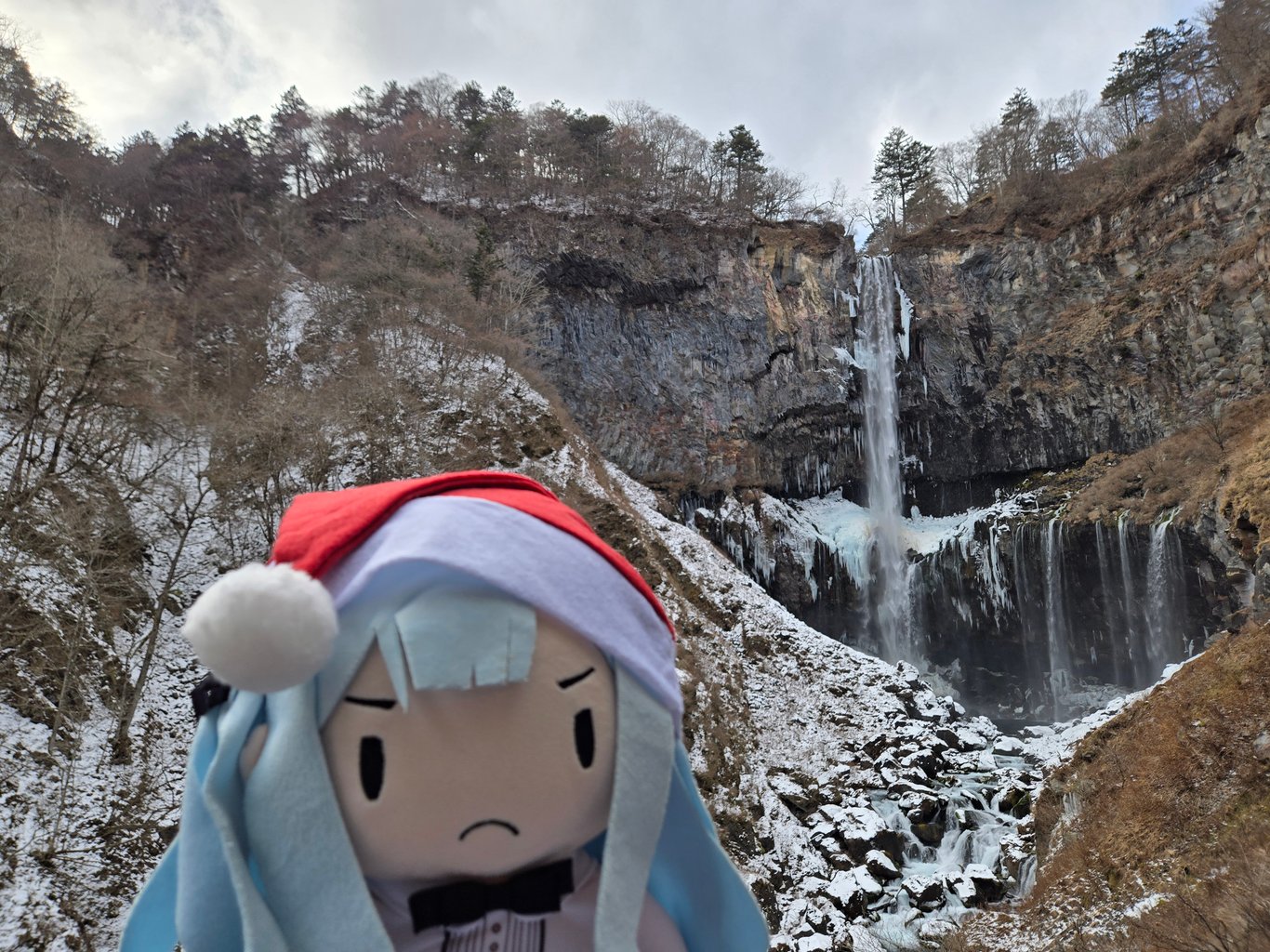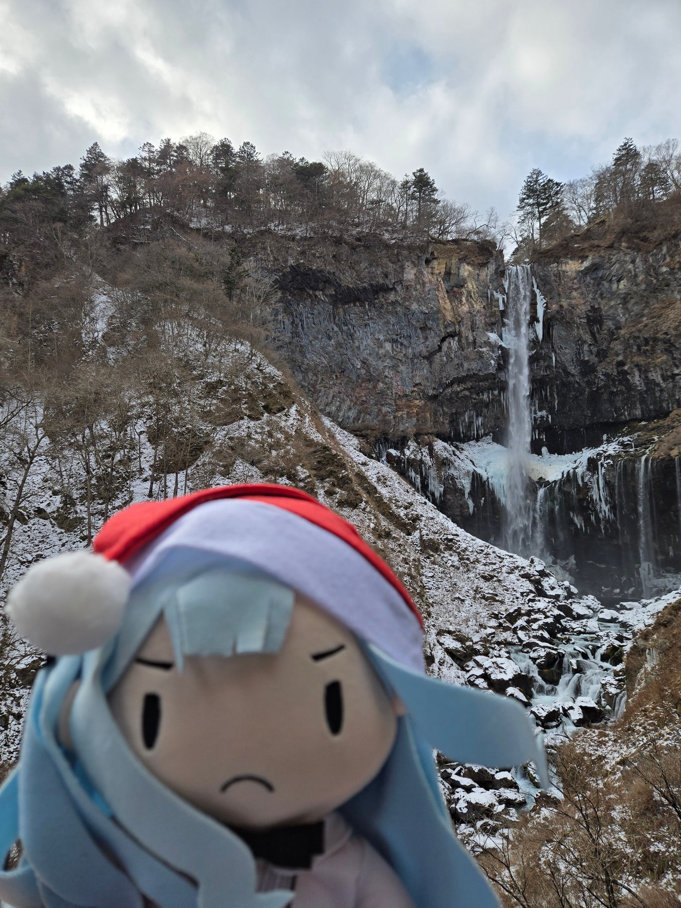 来到中禅寺湖,第一站自然是去华严瀑布,离公汽站只有几分钟路。我先到了免费观景台。本来我是没报什么希望的,华严瀑布是日本三大名瀑布之一,但众所周知的是,日本人特别热爱“三大”,制造了无数三大,且日本人特别喜欢把微型景点吹得震天响。但来到华严瀑布后我觉得我没有白来。虽然在我心目中,瀑布应该是非常宽,像一面帘子一样,但其实——我也没看过正经瀑布不是嘛?华严瀑布其实不小,至少高差很大,有97m,站在瀑布前,只看着白练击穿冰雪,落入白色的深渊,耳边只有“冰崖转石万壑雷”,感觉属实不错。